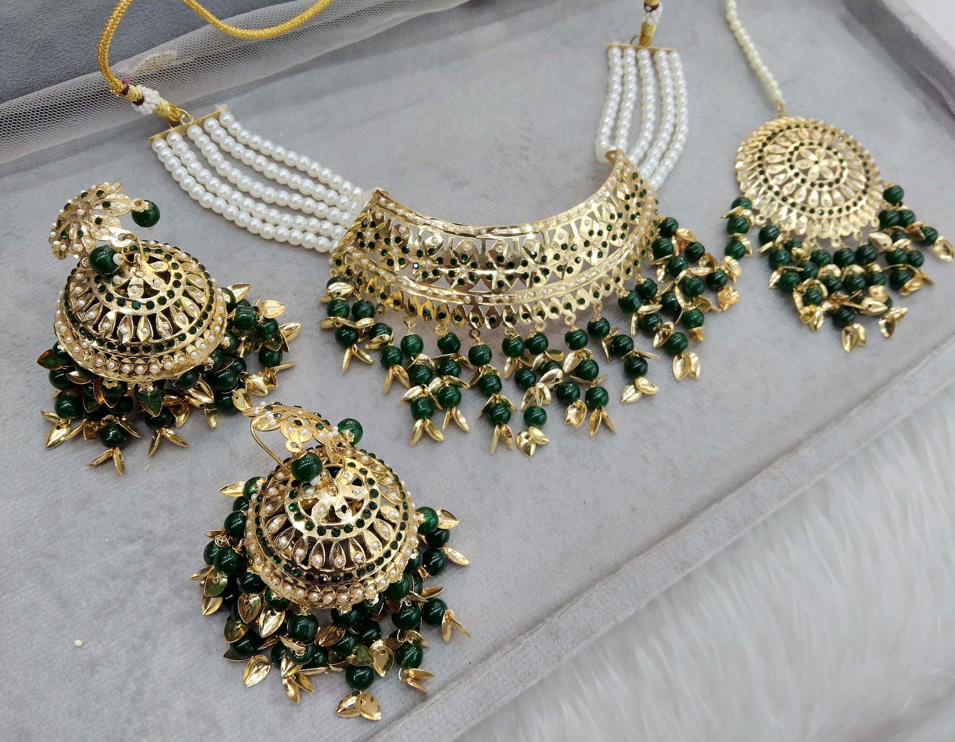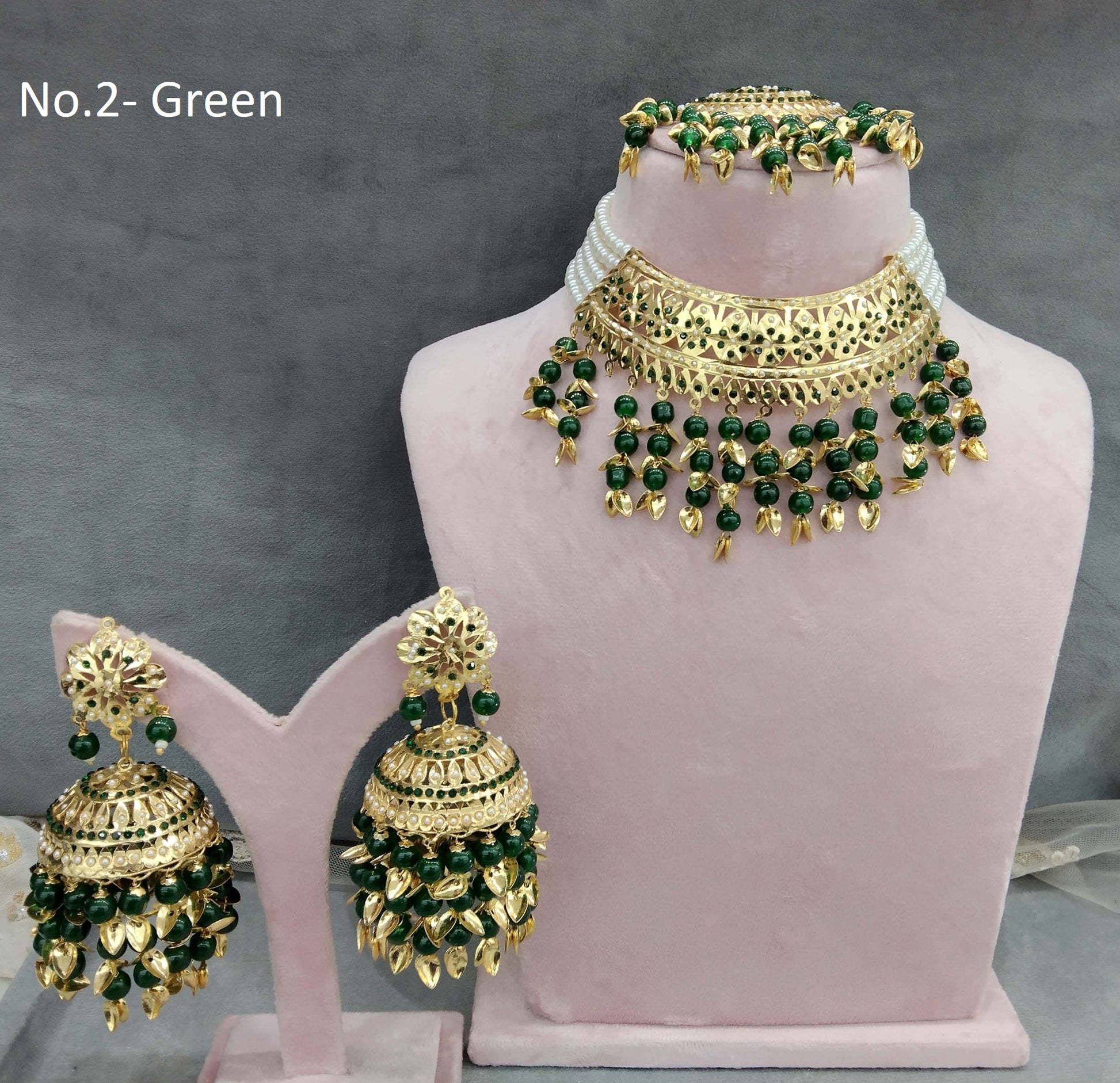 Indian Jewellery/Bridal Gold jadau choker green pippal patti Set