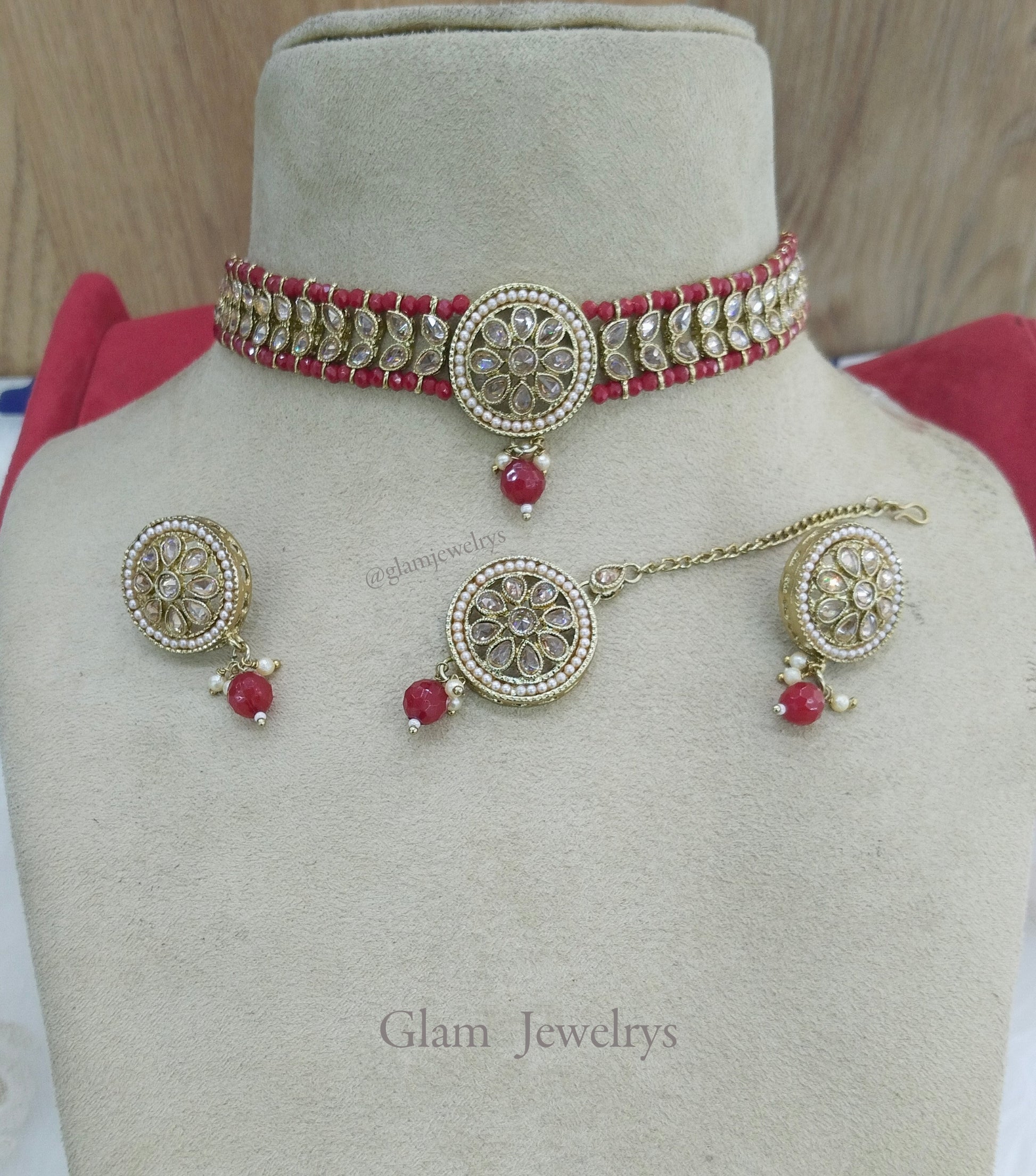 Indian jewellery choker Set/Antique gold maroon choker studs earrings set/Gold indian rita choker set