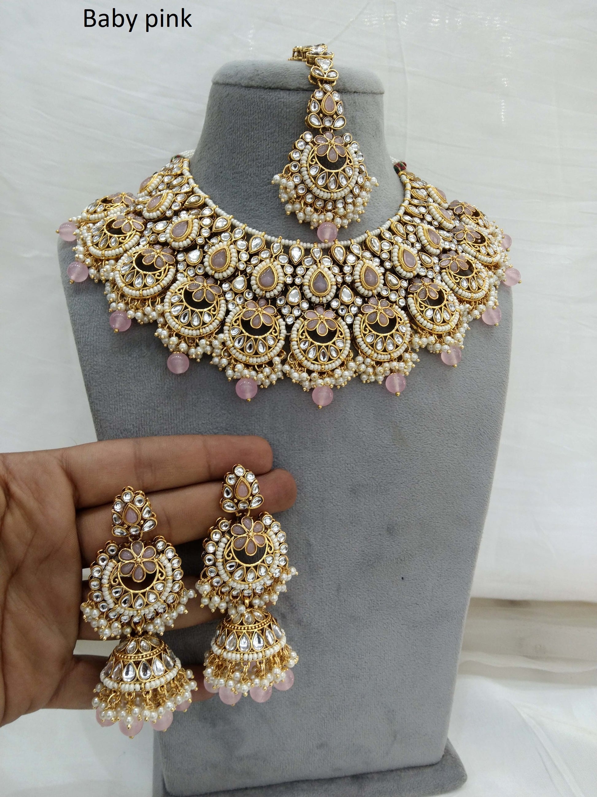 Indian Jewellery Pink Kundan Choker Set/ kundan choker hello Set