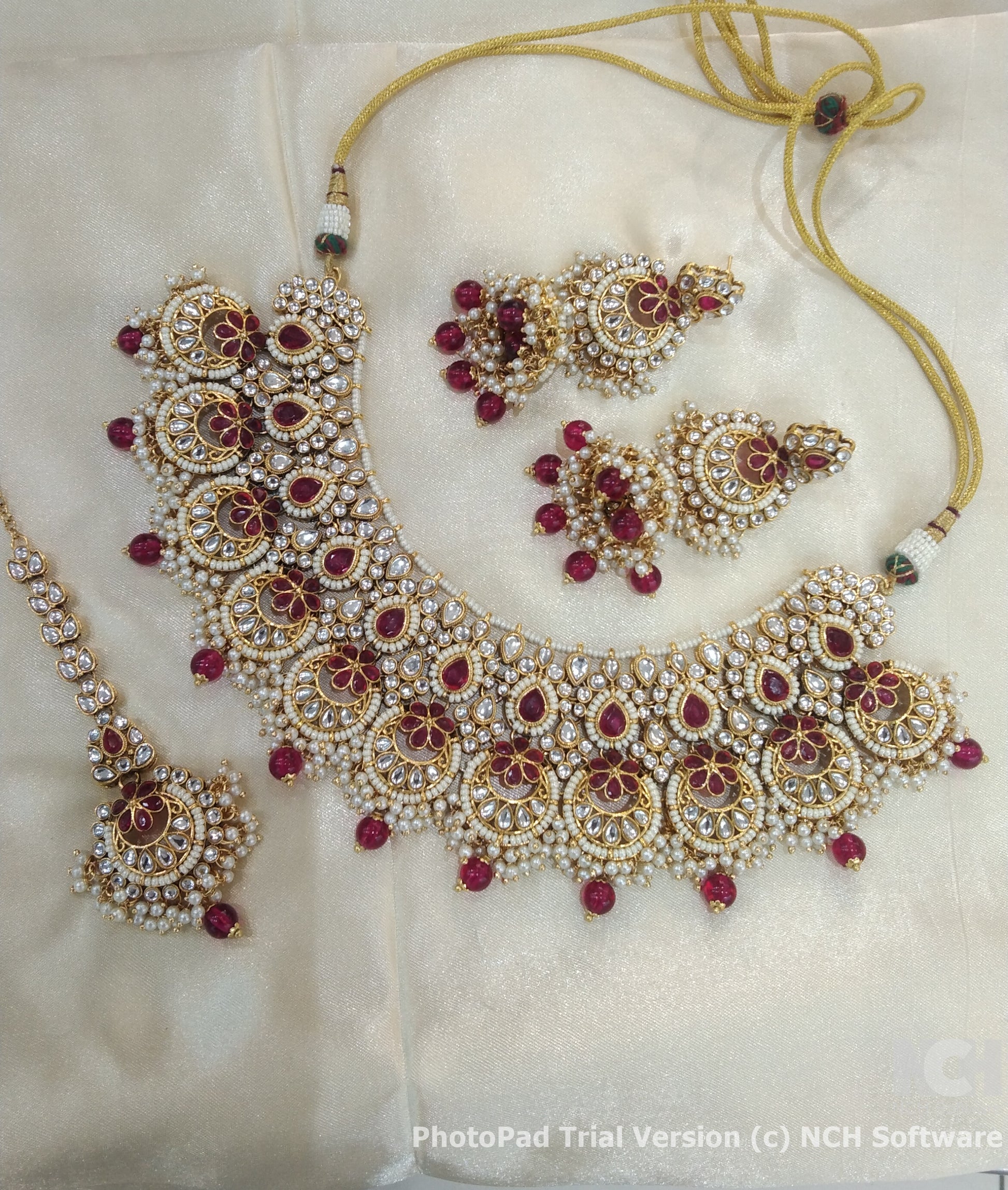 Indian Jewelry/ Gold Majenta Kundan necklace Set Indian gold Harris Necklace