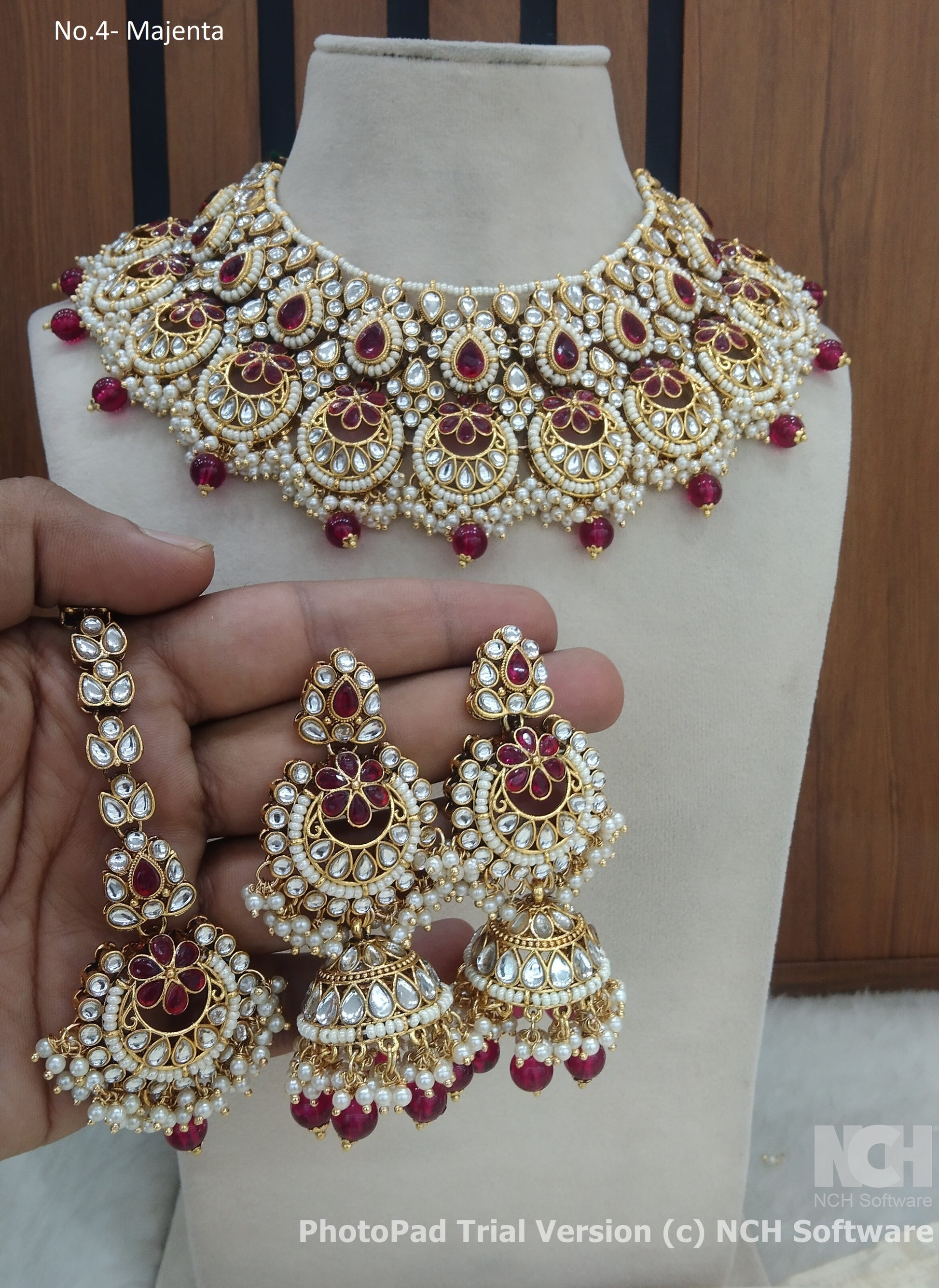 Indian Jewellery Pink Kundan Choker Set/ kundan choker hello Set