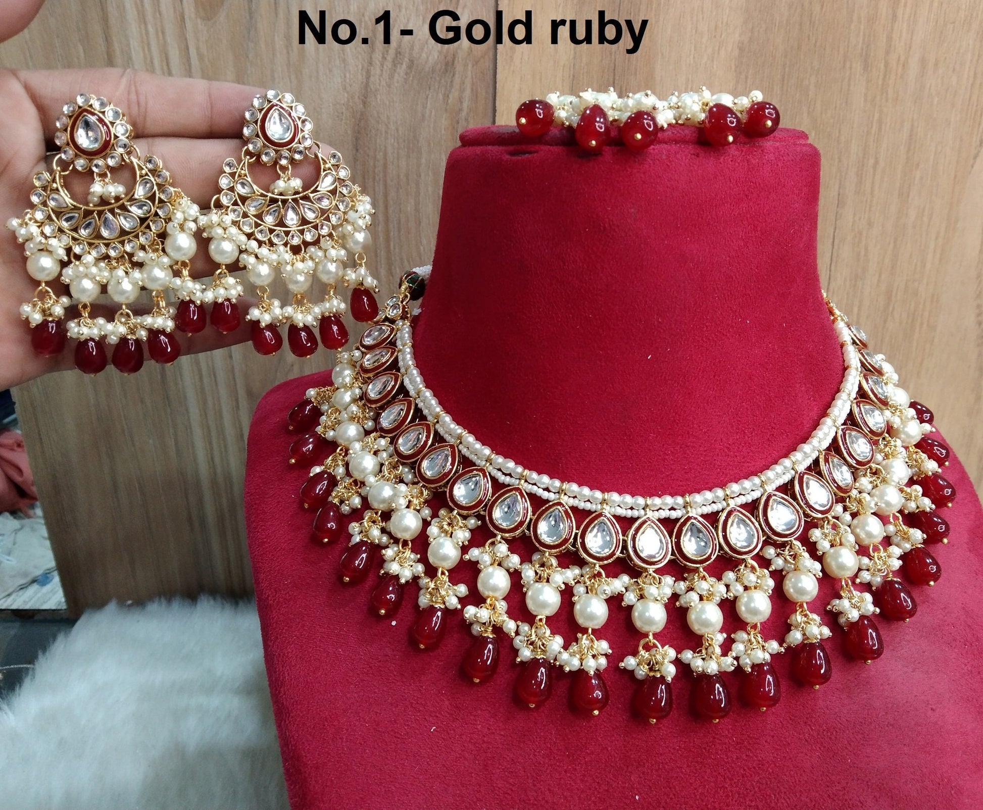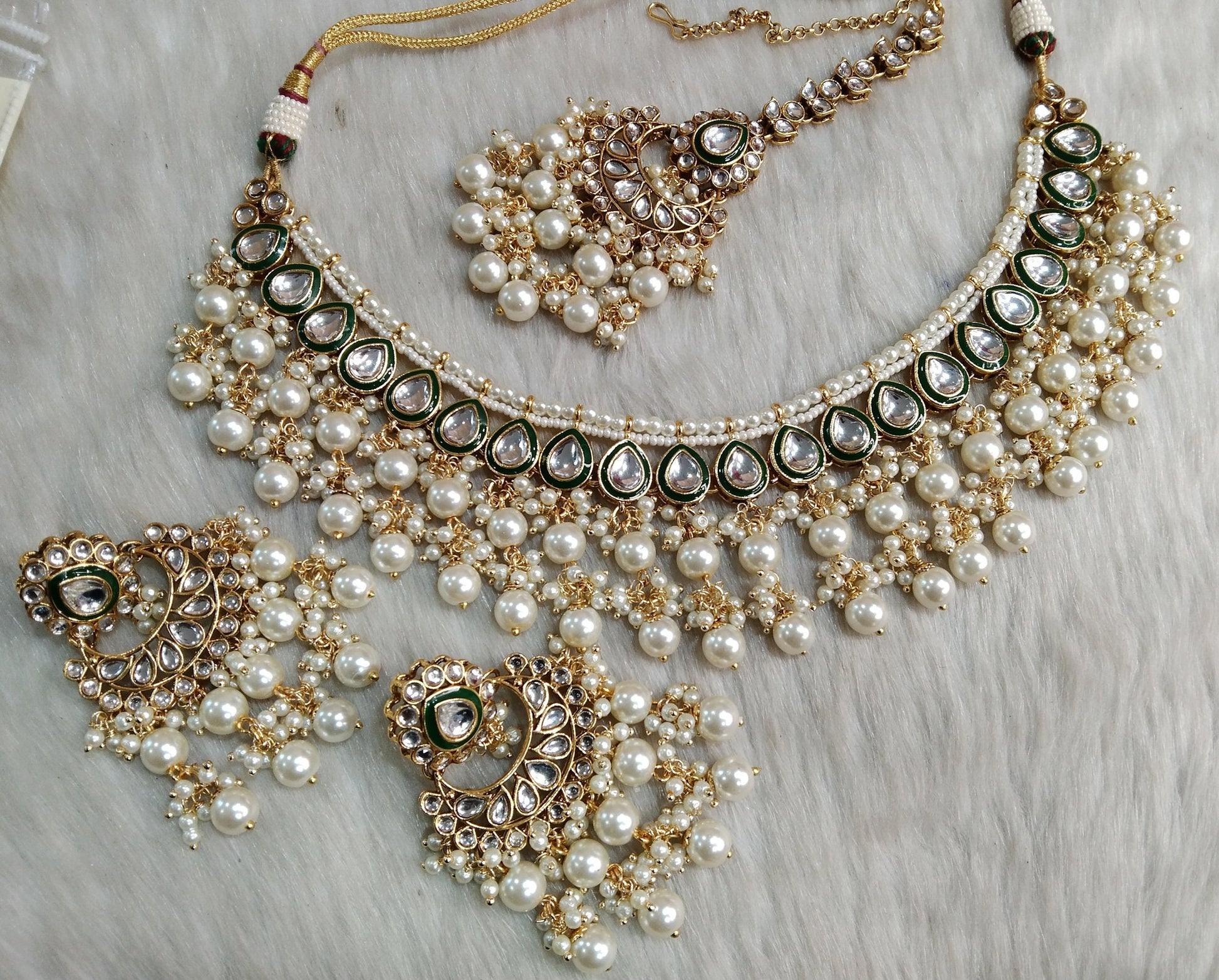 Indian Jewellery/ Gold Semi Bridal green, ruby, gold white Kundan necklace Set Indian Wedding Semi Bridal Ethnic Jewellery Riverside Necklace