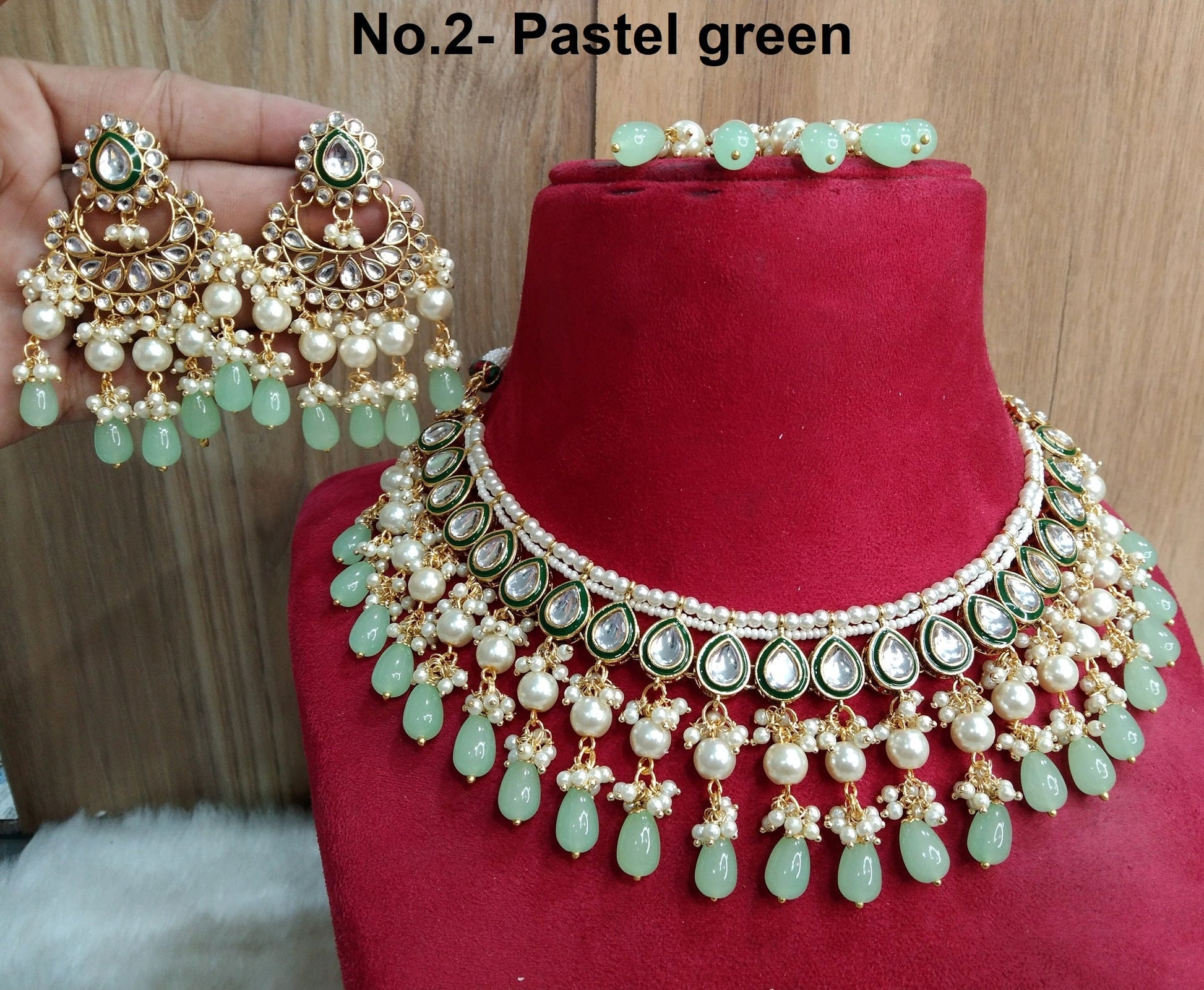 Pastel Green Bridal Necklace Jewellery Kadir Set