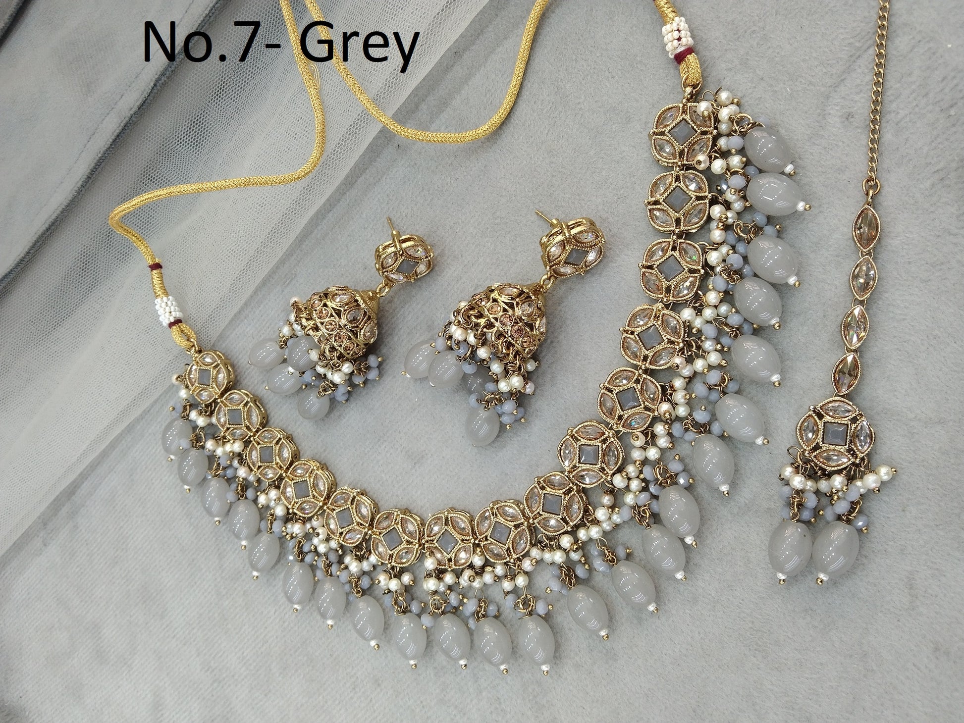 Indian Jewellery Antique gold grey necklace Tikka Set/Gold Bollywood Tauranga Set