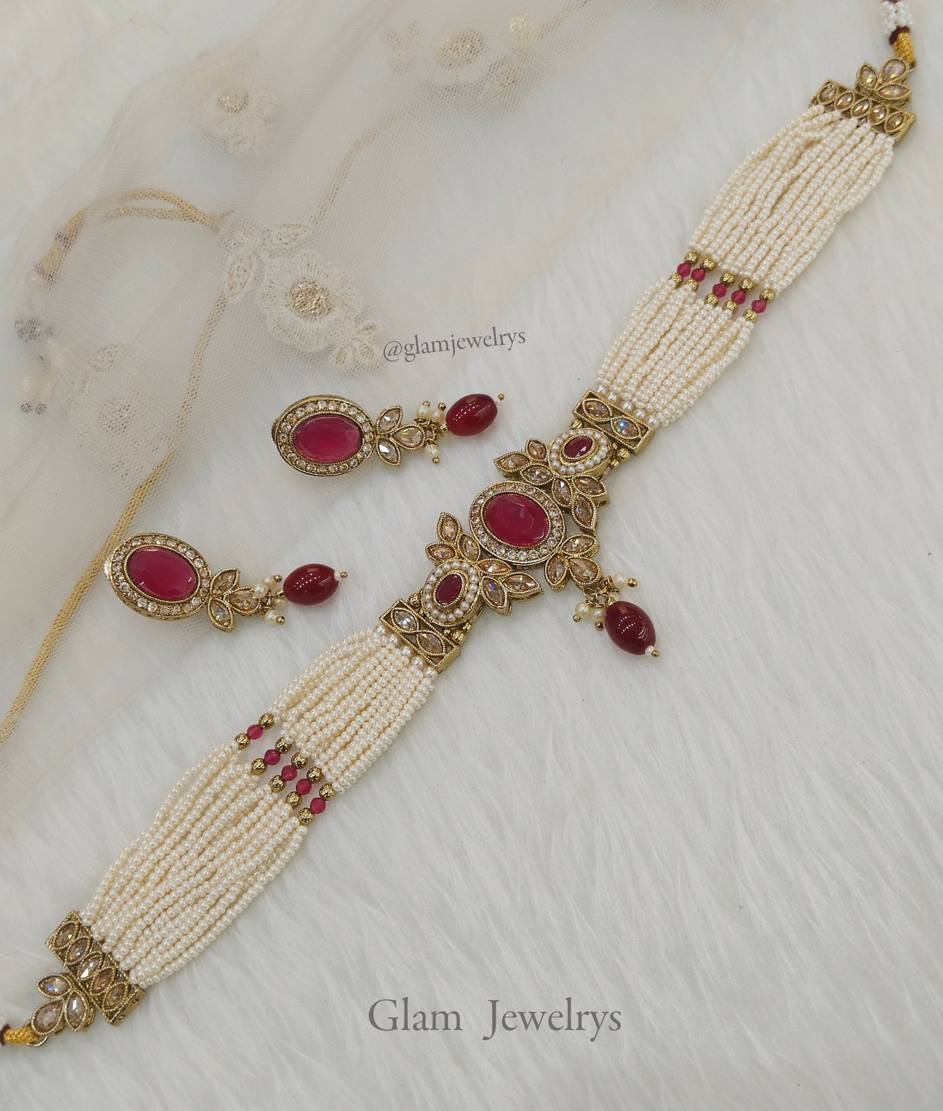 Indian Jewellery Pink Kundan Choker Set/ kundan choker hello Set