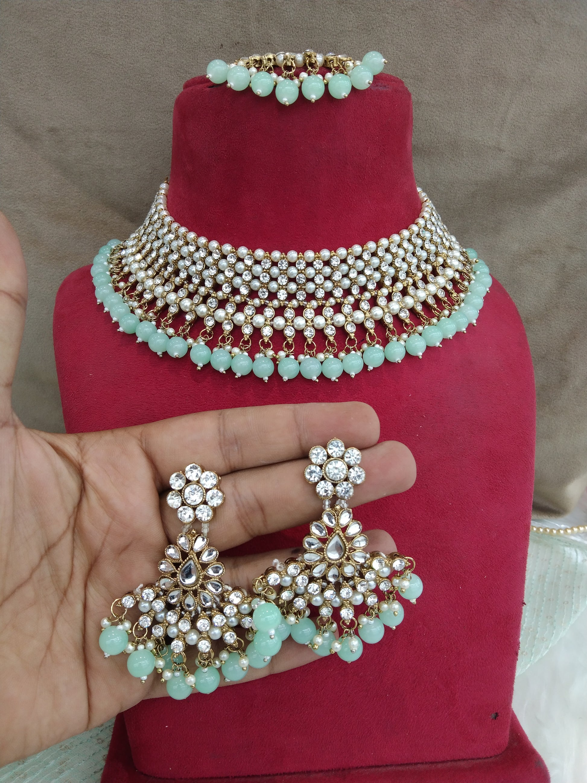 Pastel Green Bridal Necklace Jewellery Kadir Set