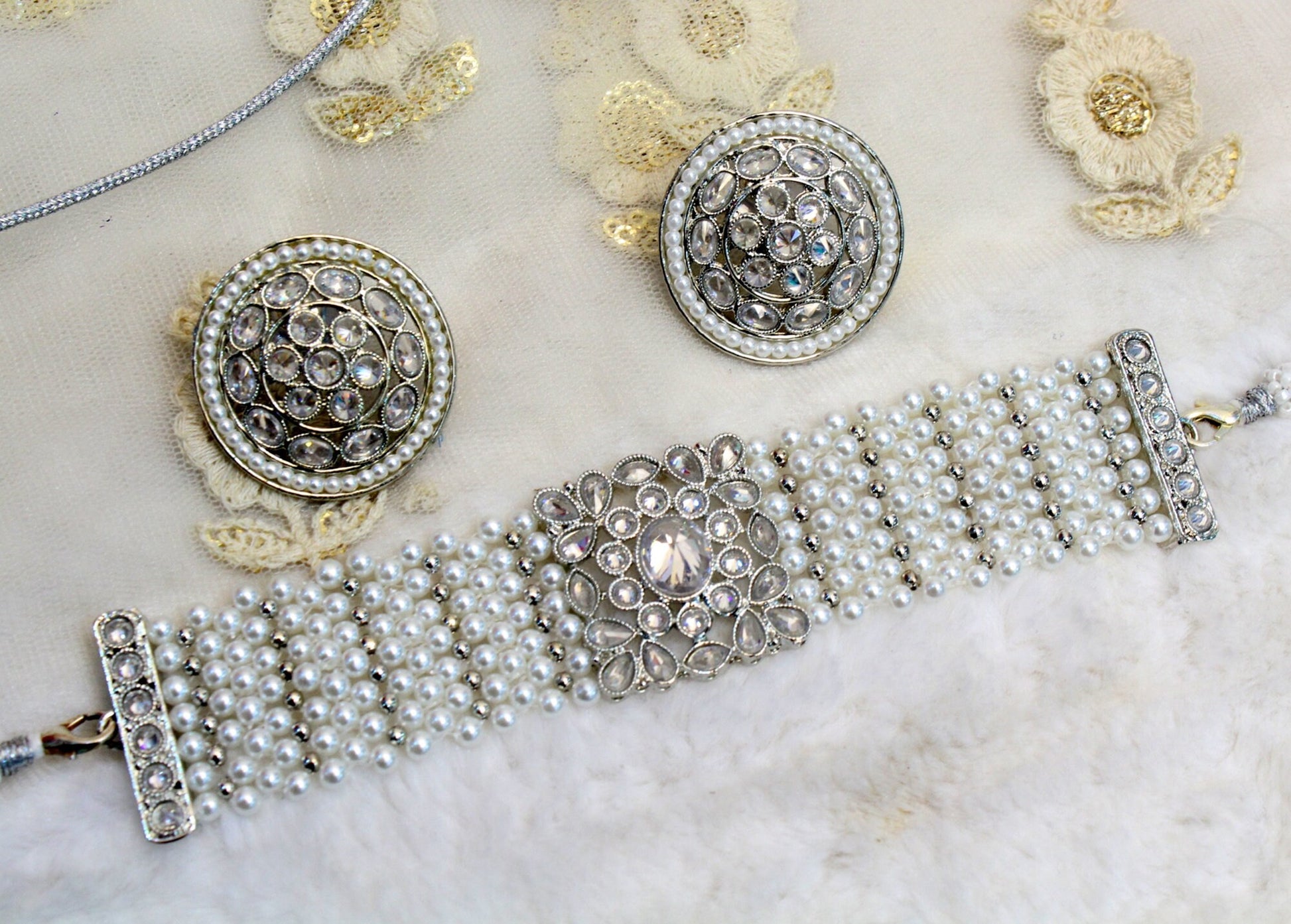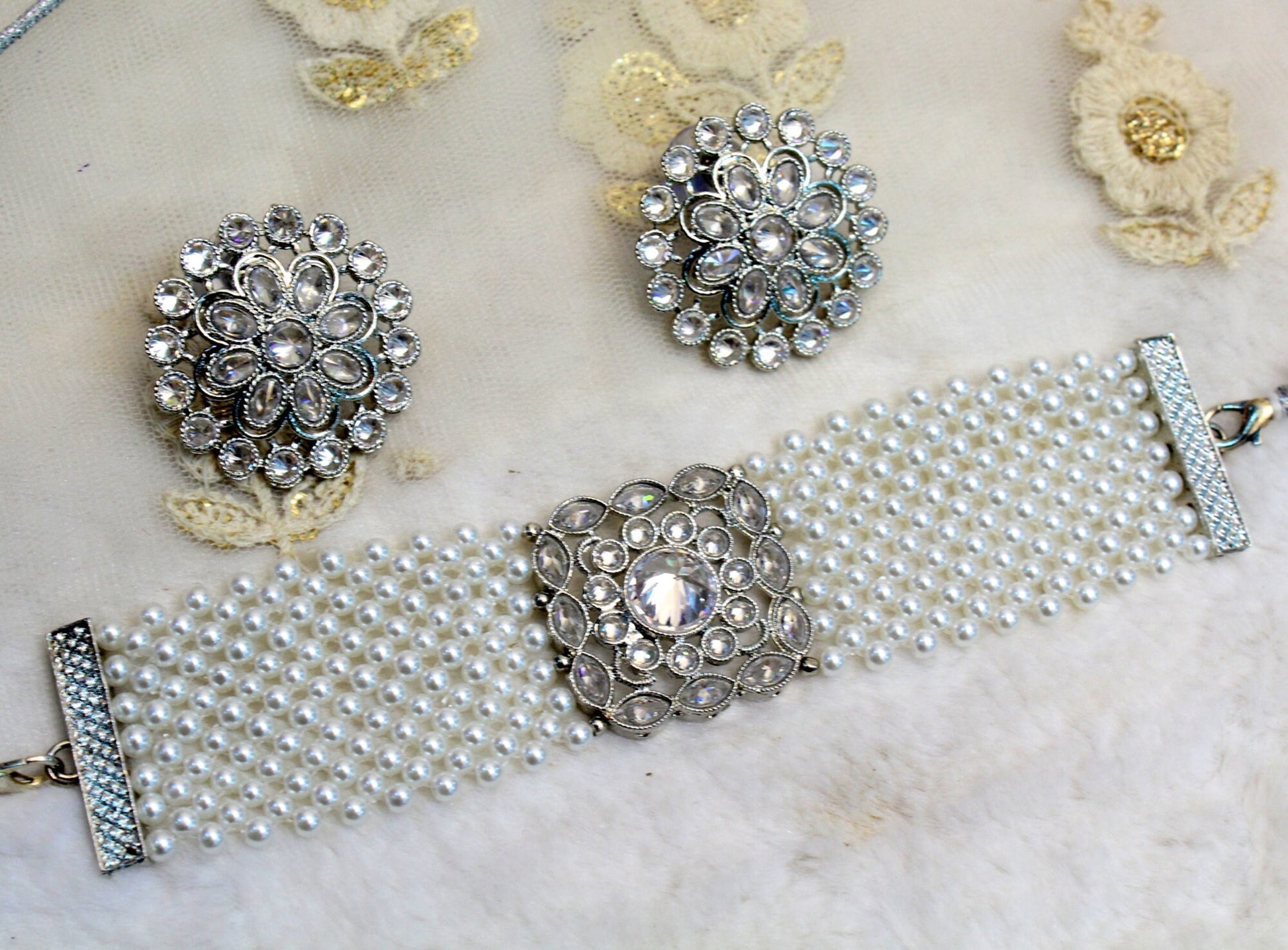 Indian Jewellery Choker Set/Dark Gold, Silver choker Studs Earrings Set/Gold Bollywood Necklace Set Jewellery