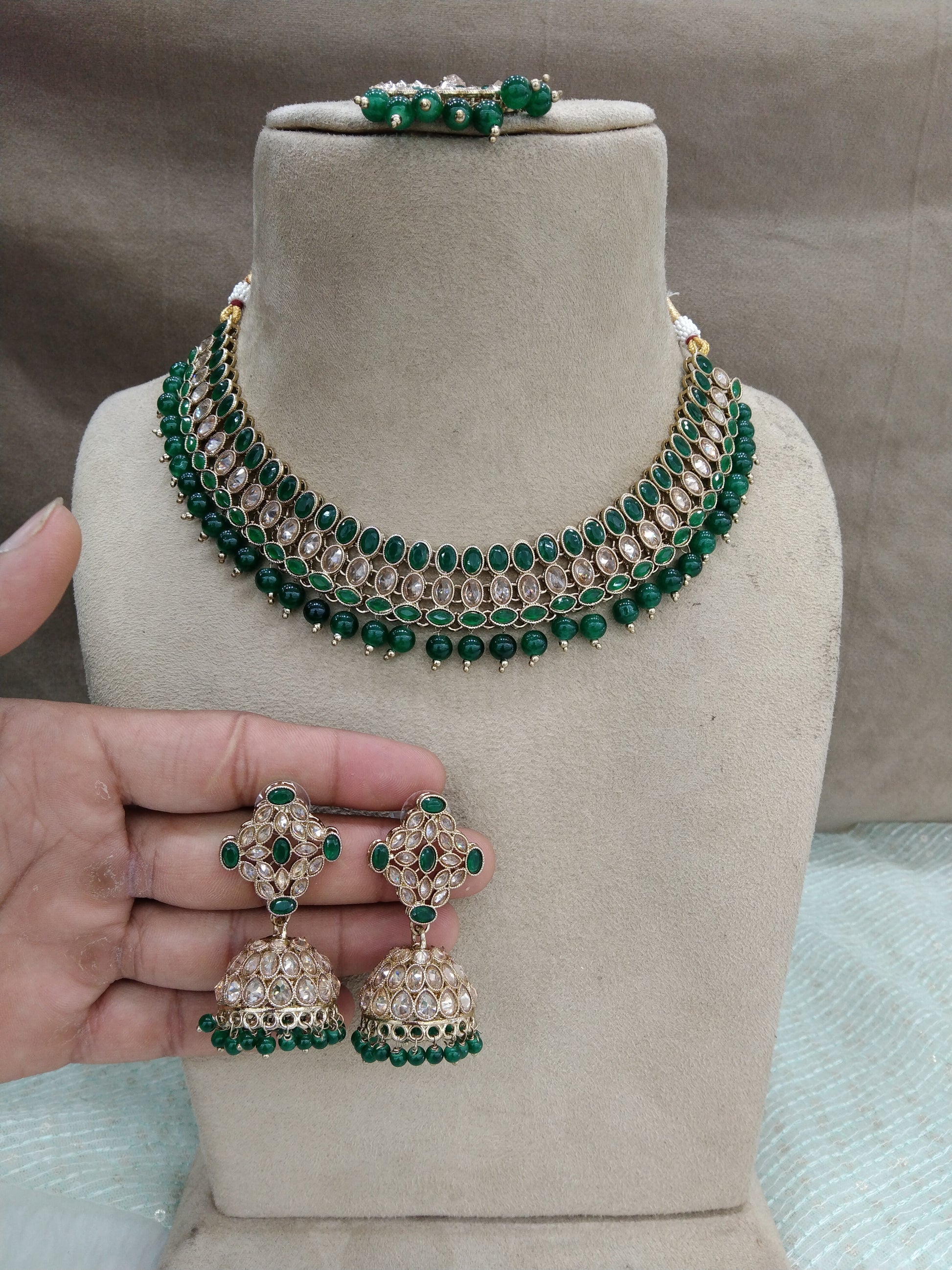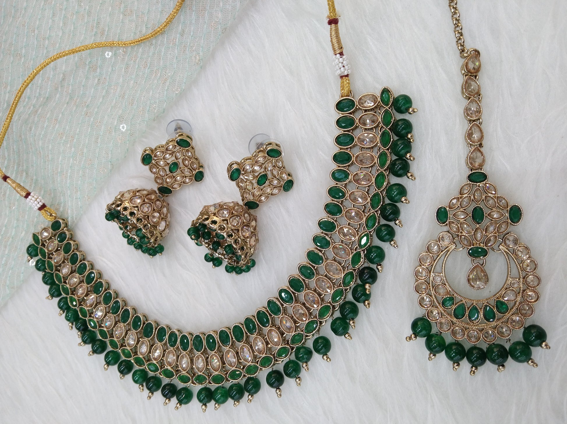 Indian Jewellery/Dark gold green necklace Set/Indian Jewellery oakland Set