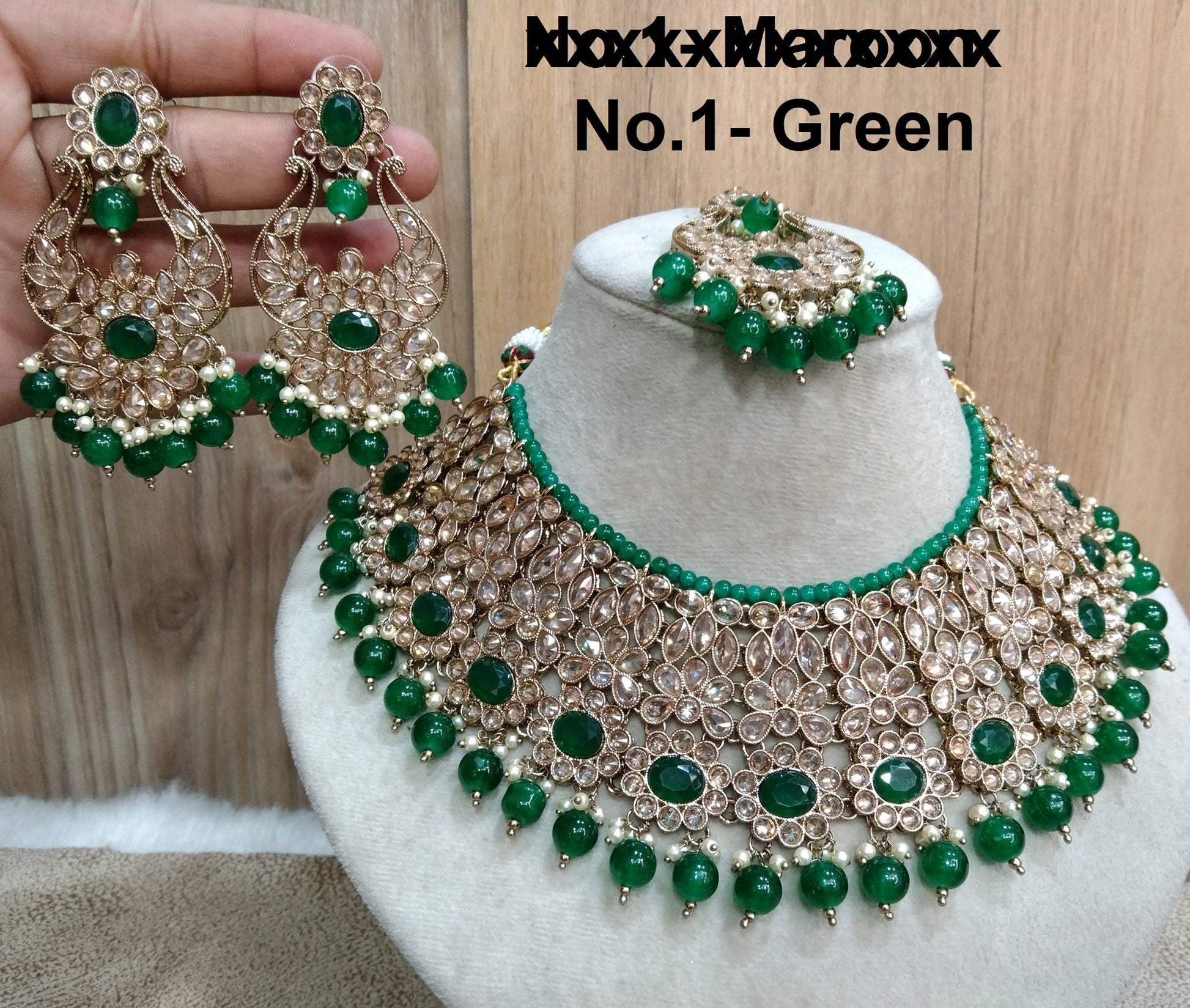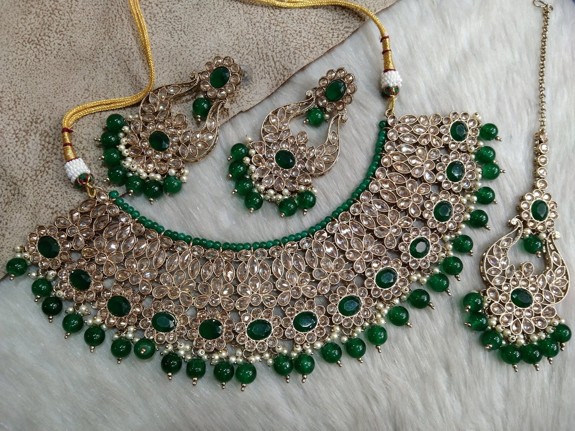 Pastel Green Bridal Necklace Jewellery Kadir Set