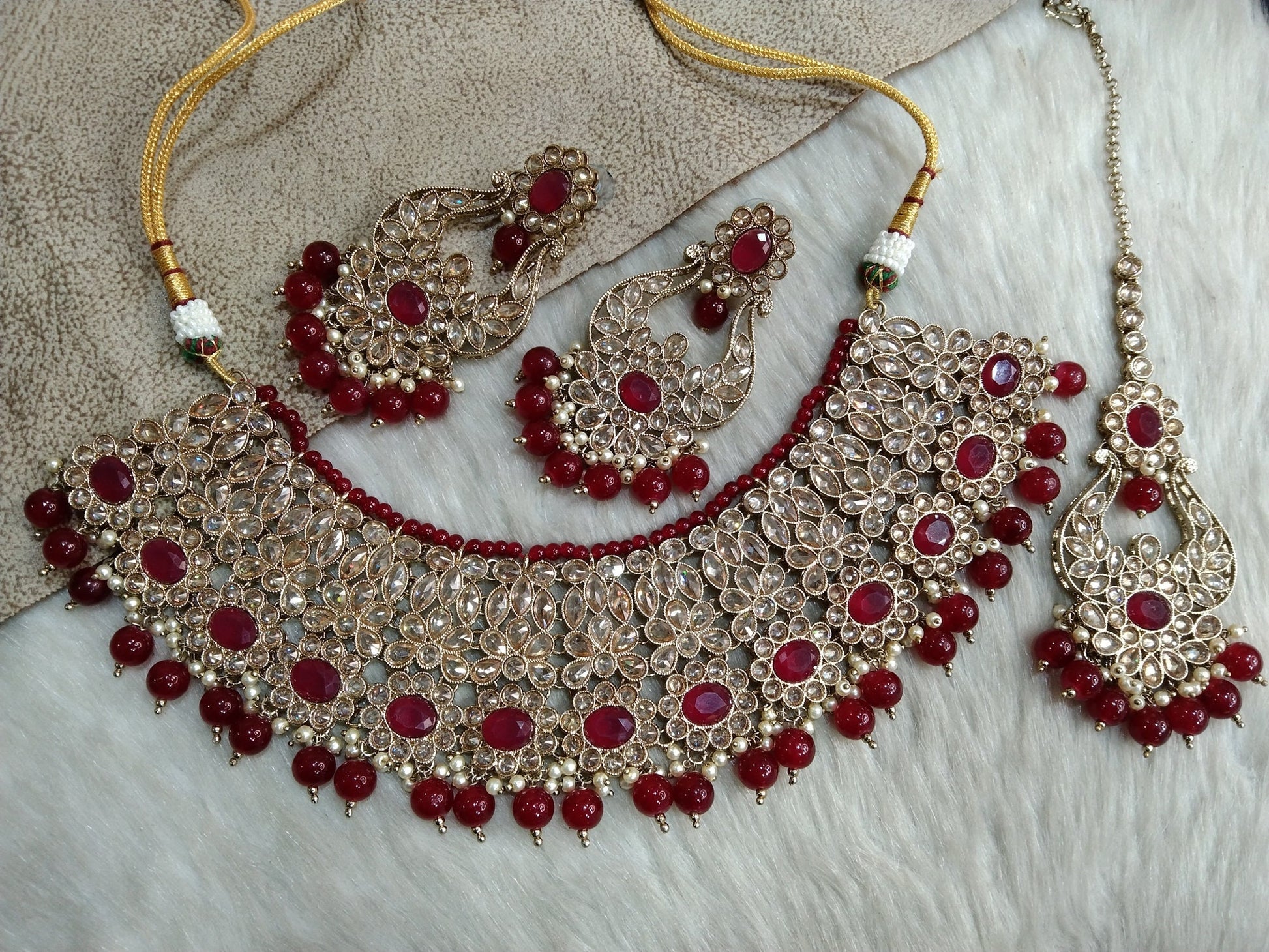 Indian Jewellery/Dark gold necklace Set/Bollywood Gold Indian Jewelry Jewellery queenstown Set /Bridesmaid jewellery sets