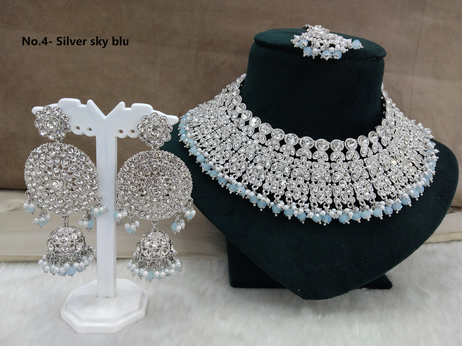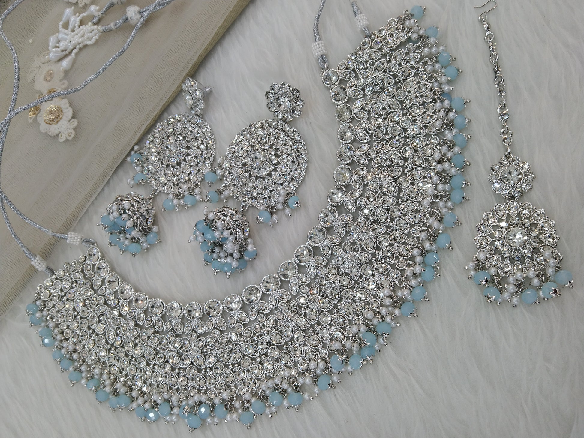 Indian Jewellery/Semi bridal silver sky blue bollywood bride jewellery ventura necklace set