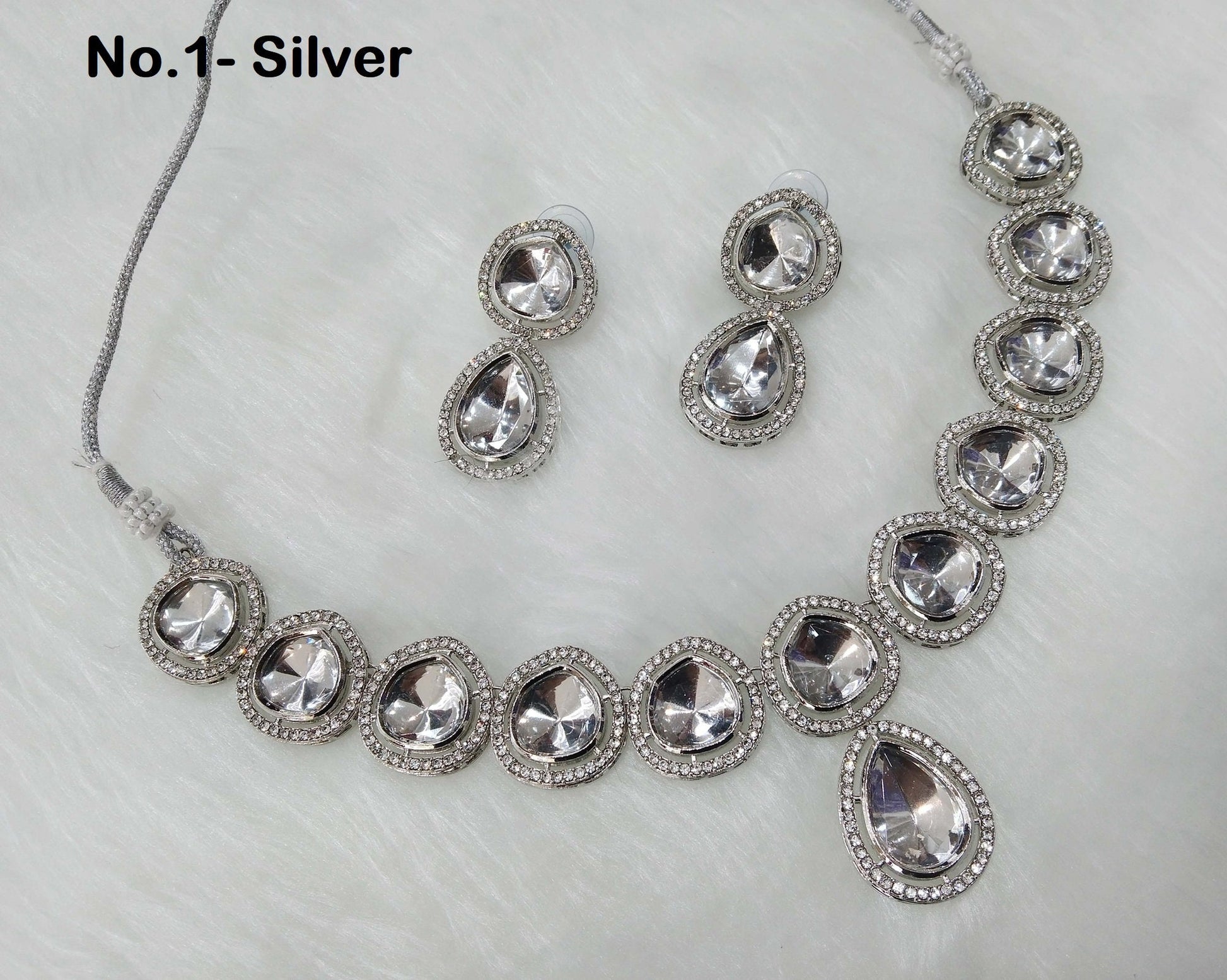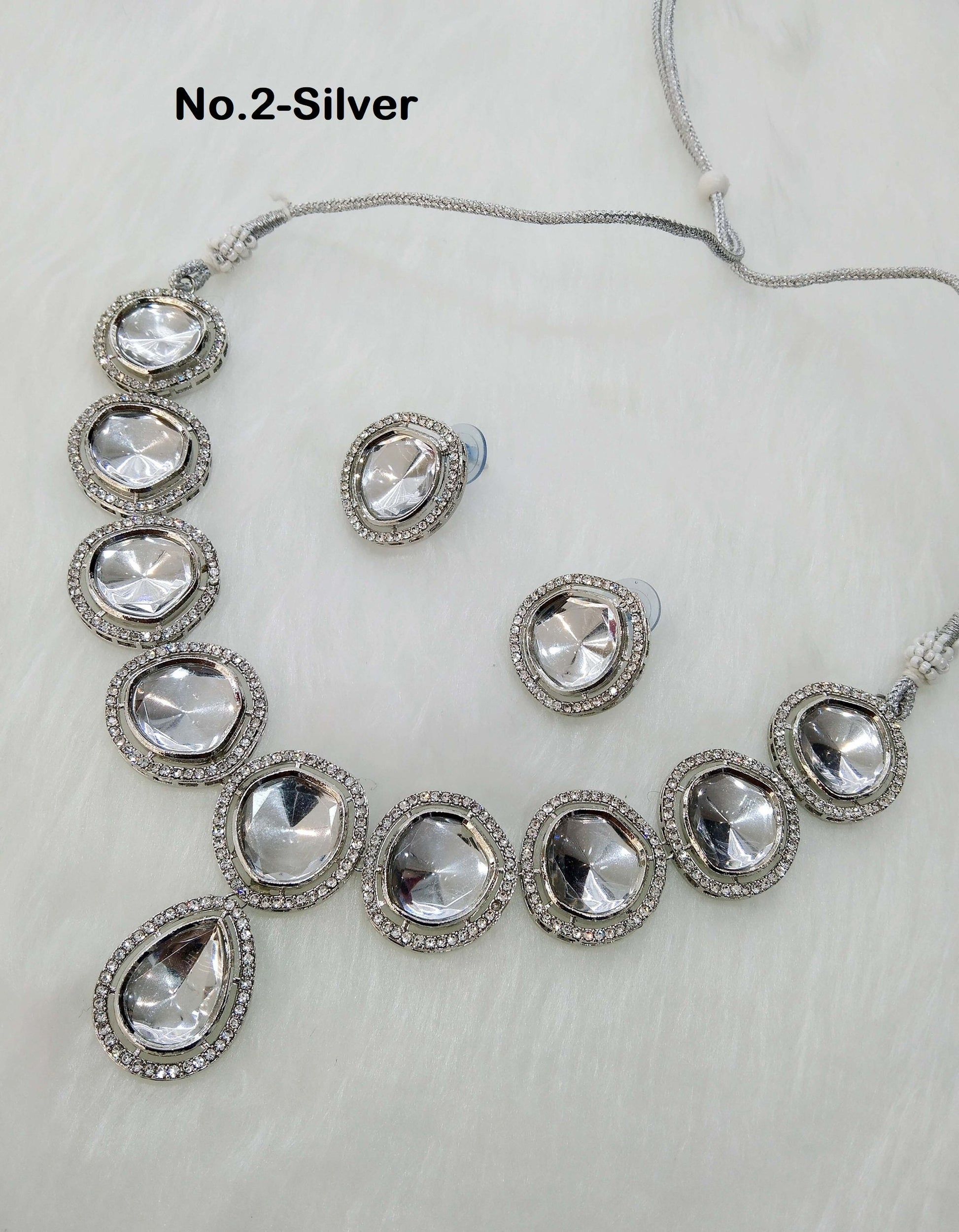 Indian Jewellery ,Silver Kundan necklace Set Indian Wedding Semi Bridal Ethnic Bridal Necklace, bridesmaids set, Kundan set