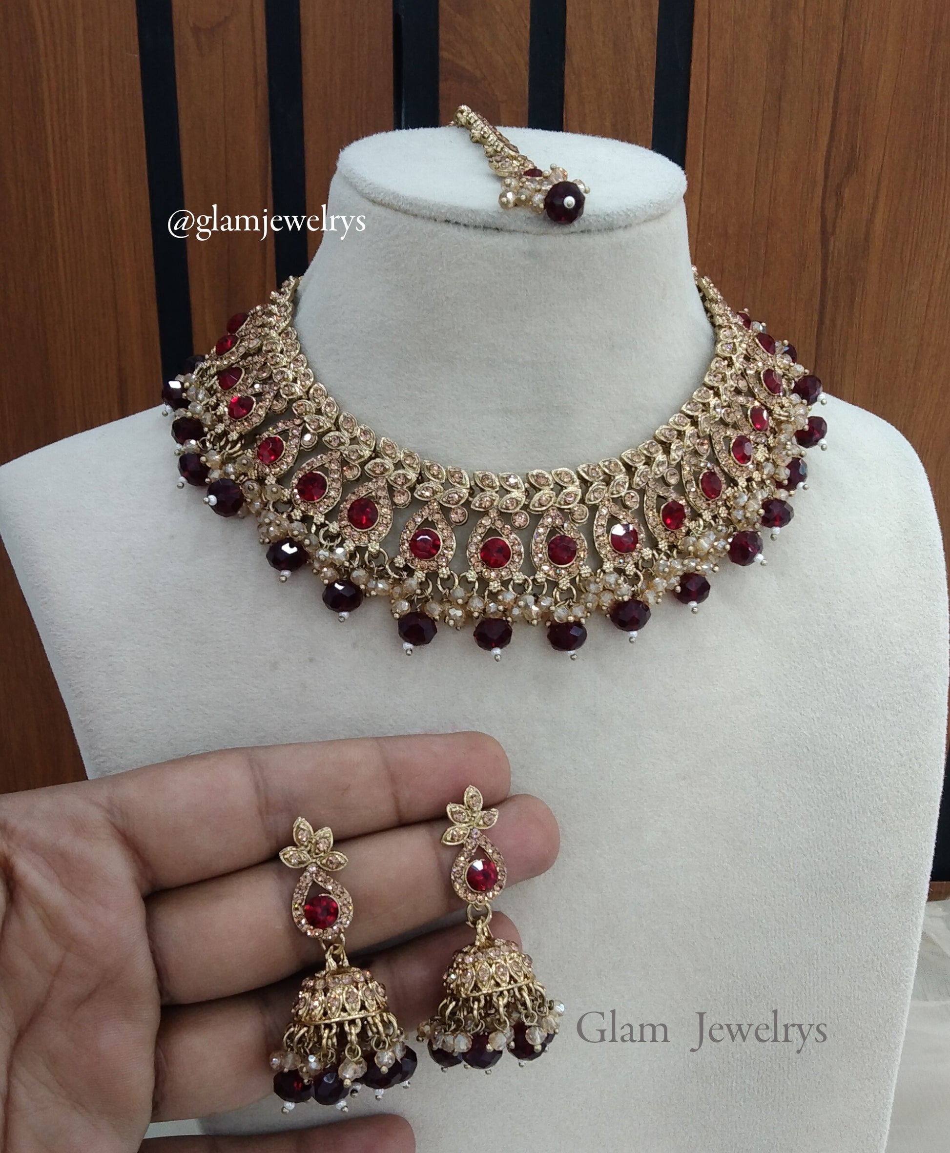 Indian Jewelry Maroon Necklace Rimpi Set