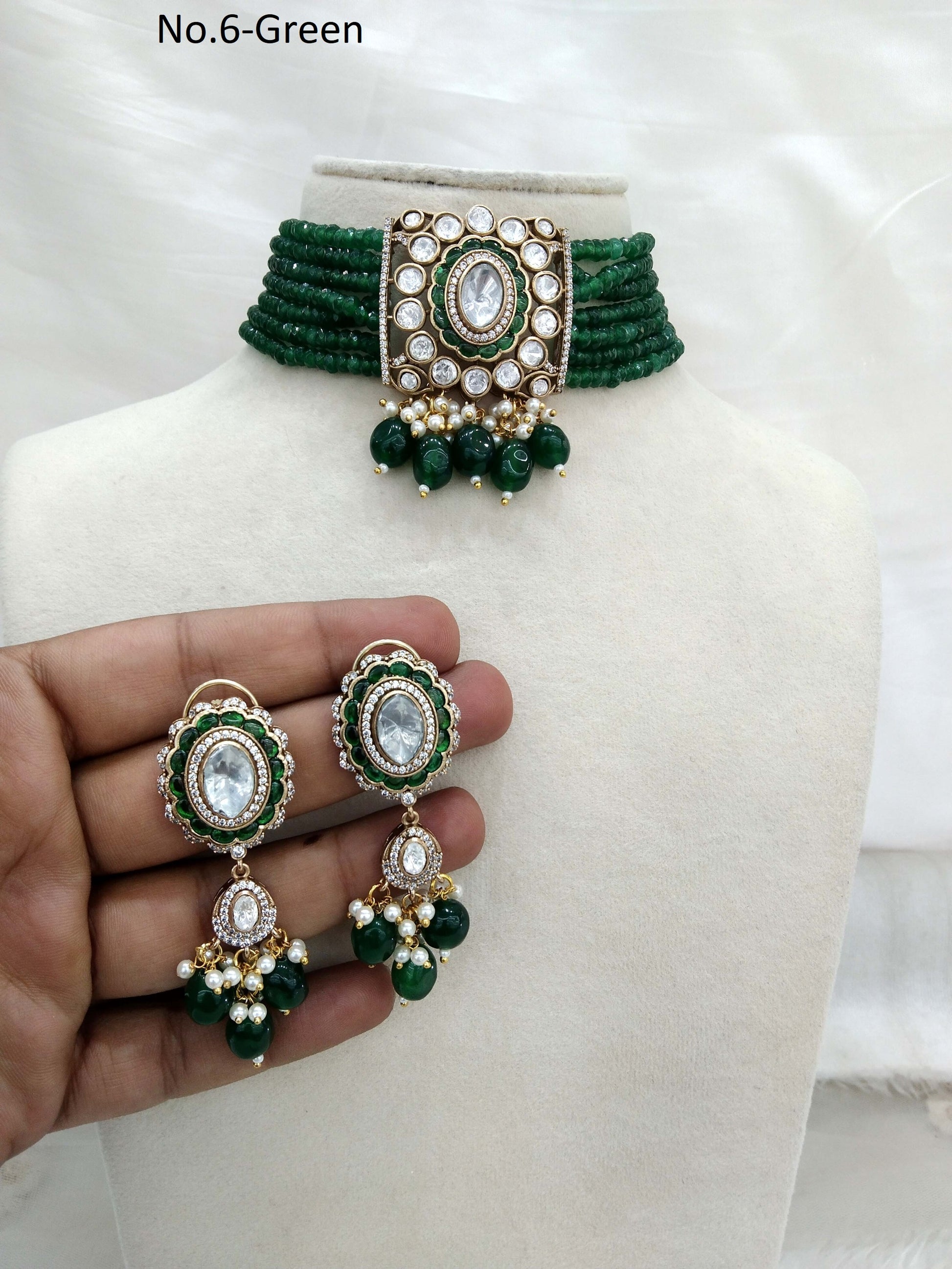 Indian kundan Jewellery Gold Green choker Indian Jewellery jassi Wedding Set