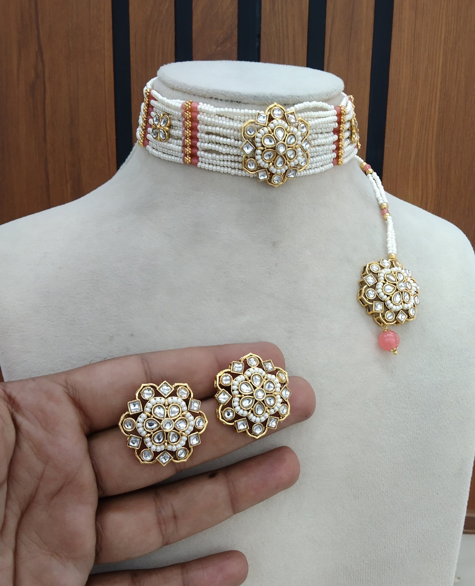 Indian Jewellery Pink Kundan Choker Set/ kundan choker hello Set