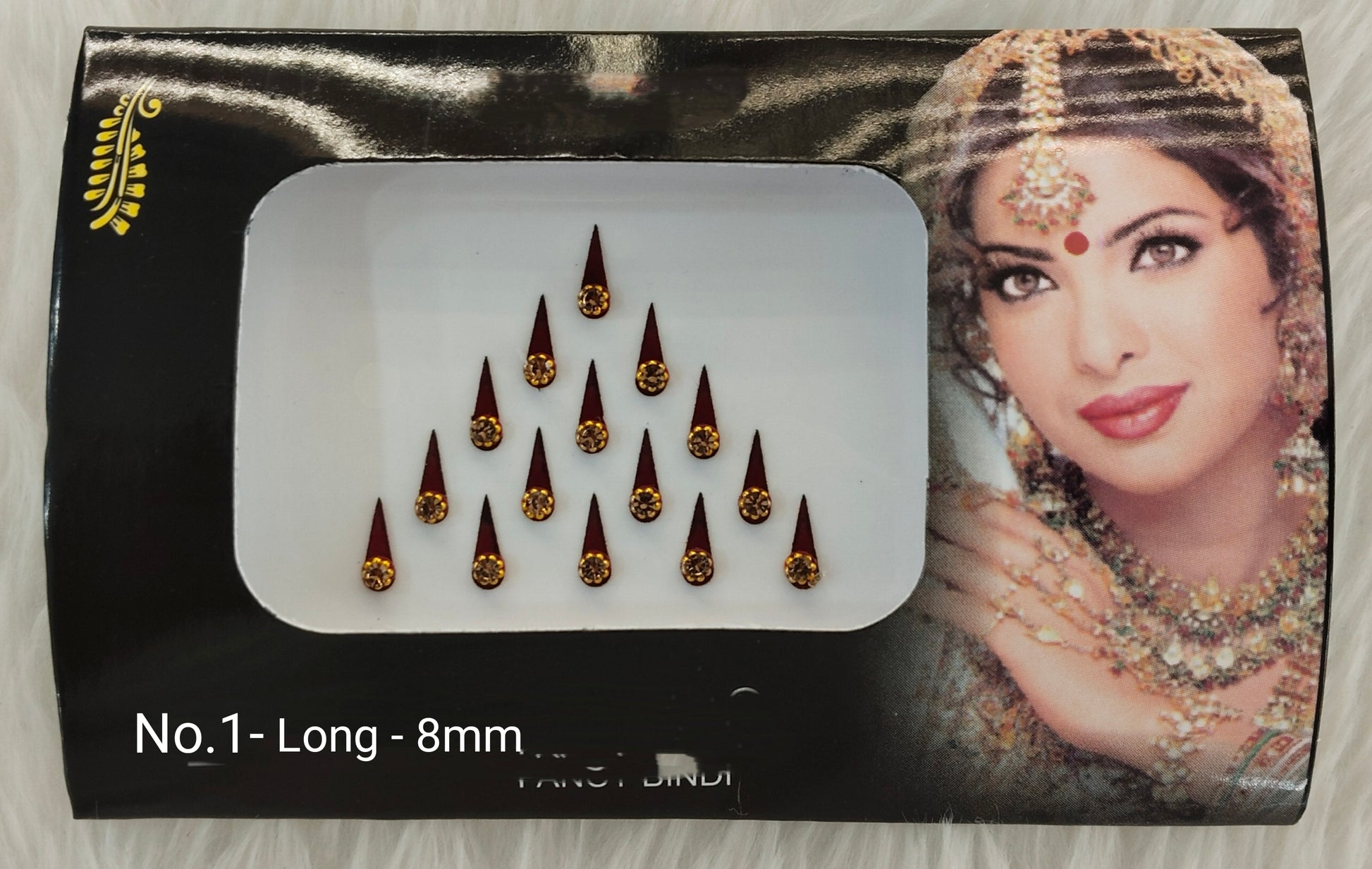 Indian Long Bindis Tattoo Sticker Gold Bollywood Card