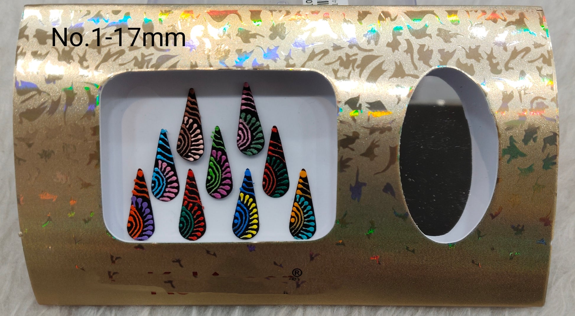 Indian Long Bindis Tattoo Sticker Multi Color Bollywood Card