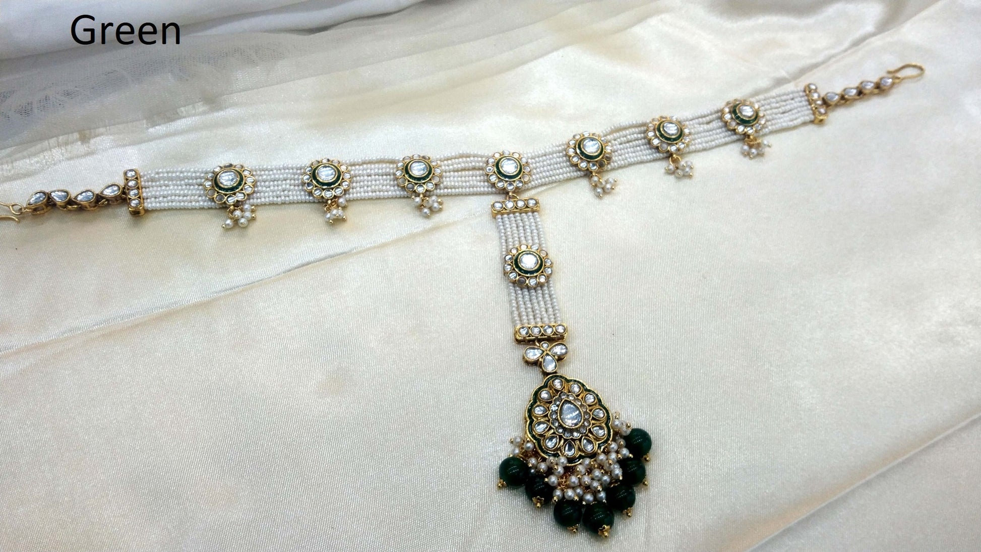 Indian Green Matha patti Head Piece Tikka Hair chain/ Indian Head Jewellery