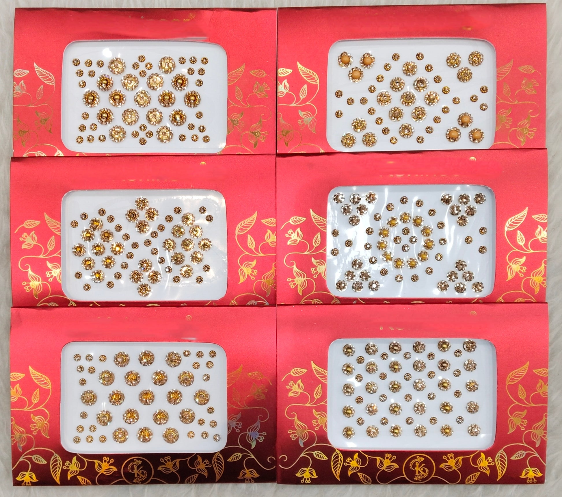 Indian Round Bindis Tattoo Sticker Gold Bollywood Card