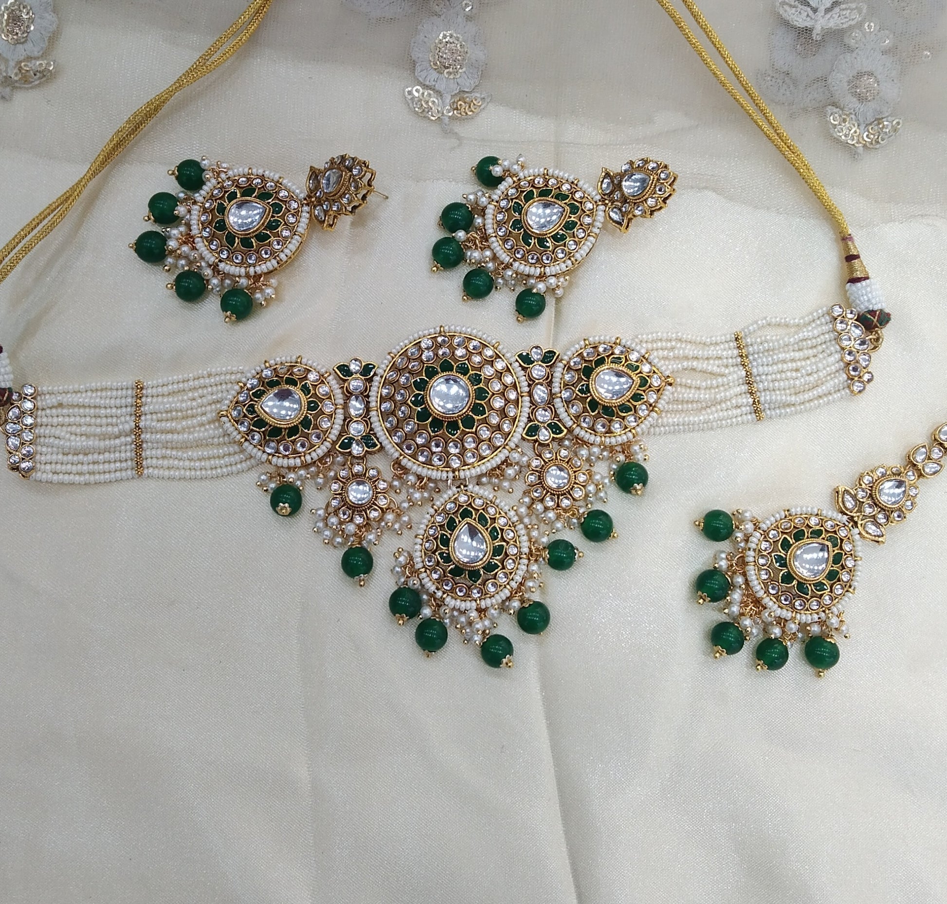 Pastel Green Bridal Necklace Jewellery Kadir Set
