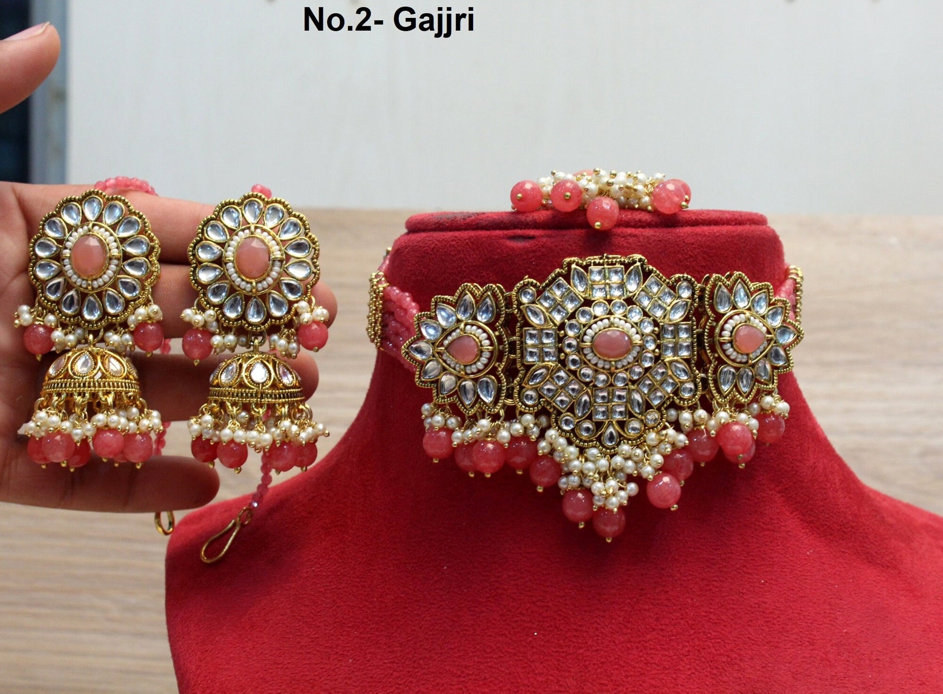 Indian Jewellery Pink Kundan Choker Set/ kundan choker hello Set