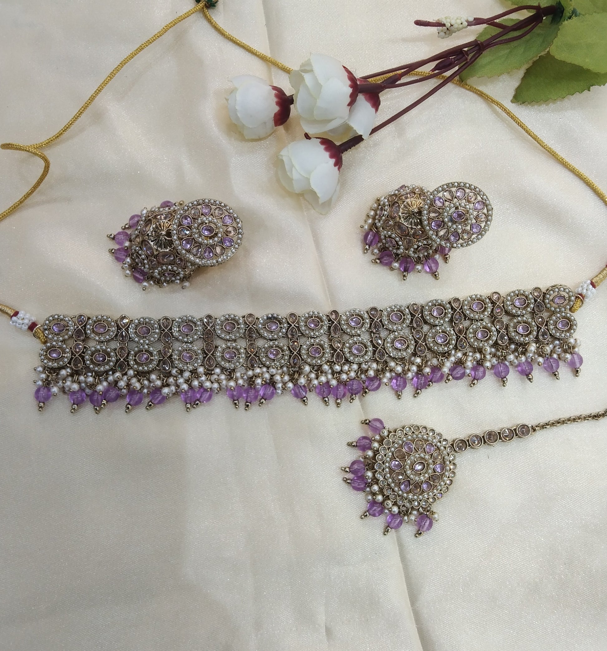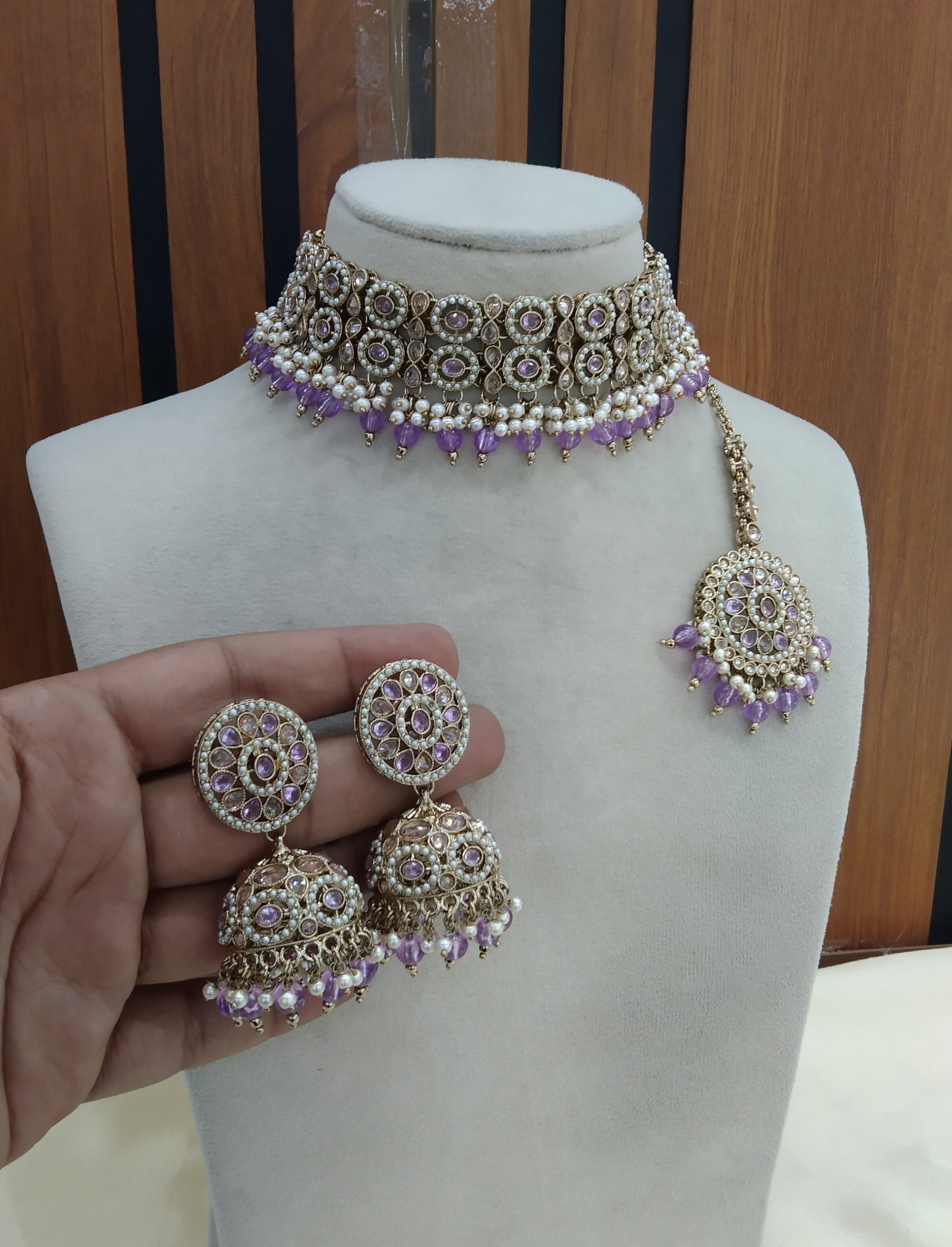 *Light weight gold Choker Set with earrings Tikka as shown in the pic.