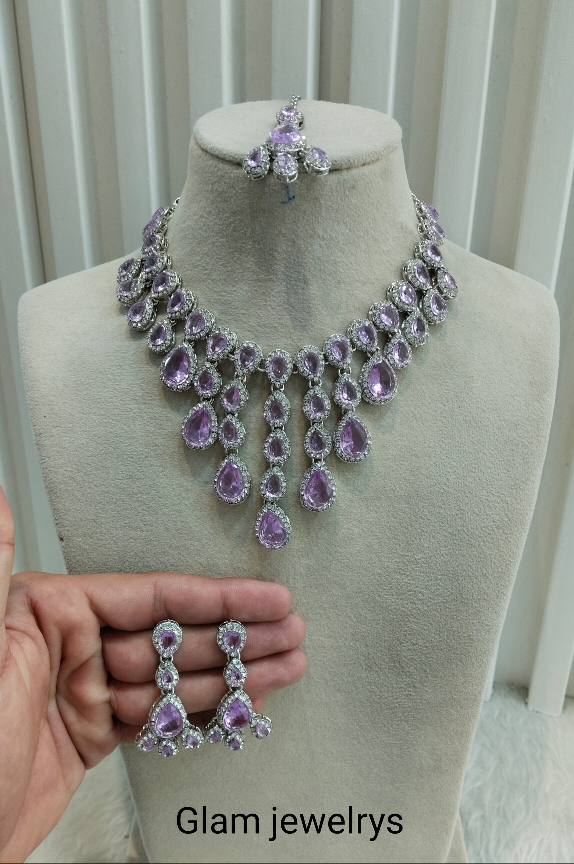Lavender Silver Zircon Necklace Indian Jewellery Shami Set