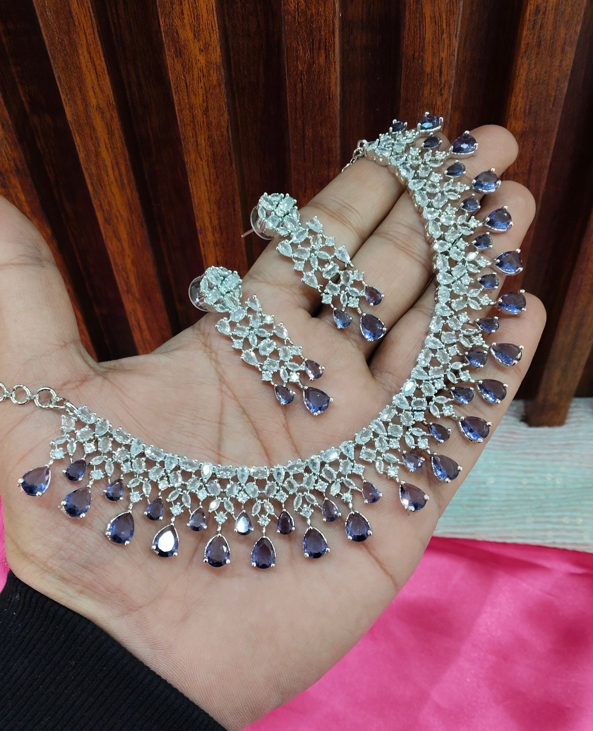 Light Purple CZ Silver Necklace Indian Jewellery Auj Set