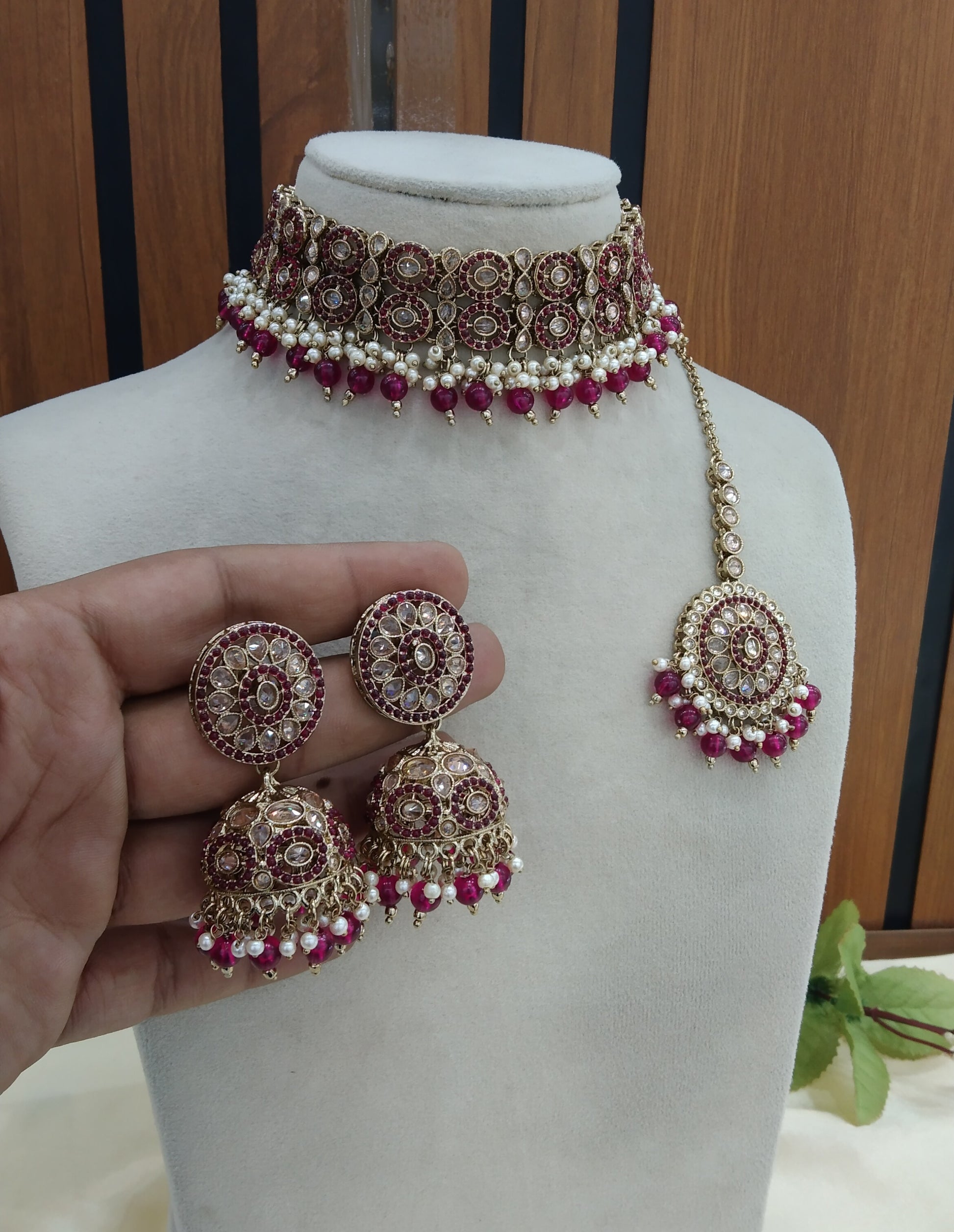 Indian Jewellery Pink Kundan Choker Set/ kundan choker hello Set