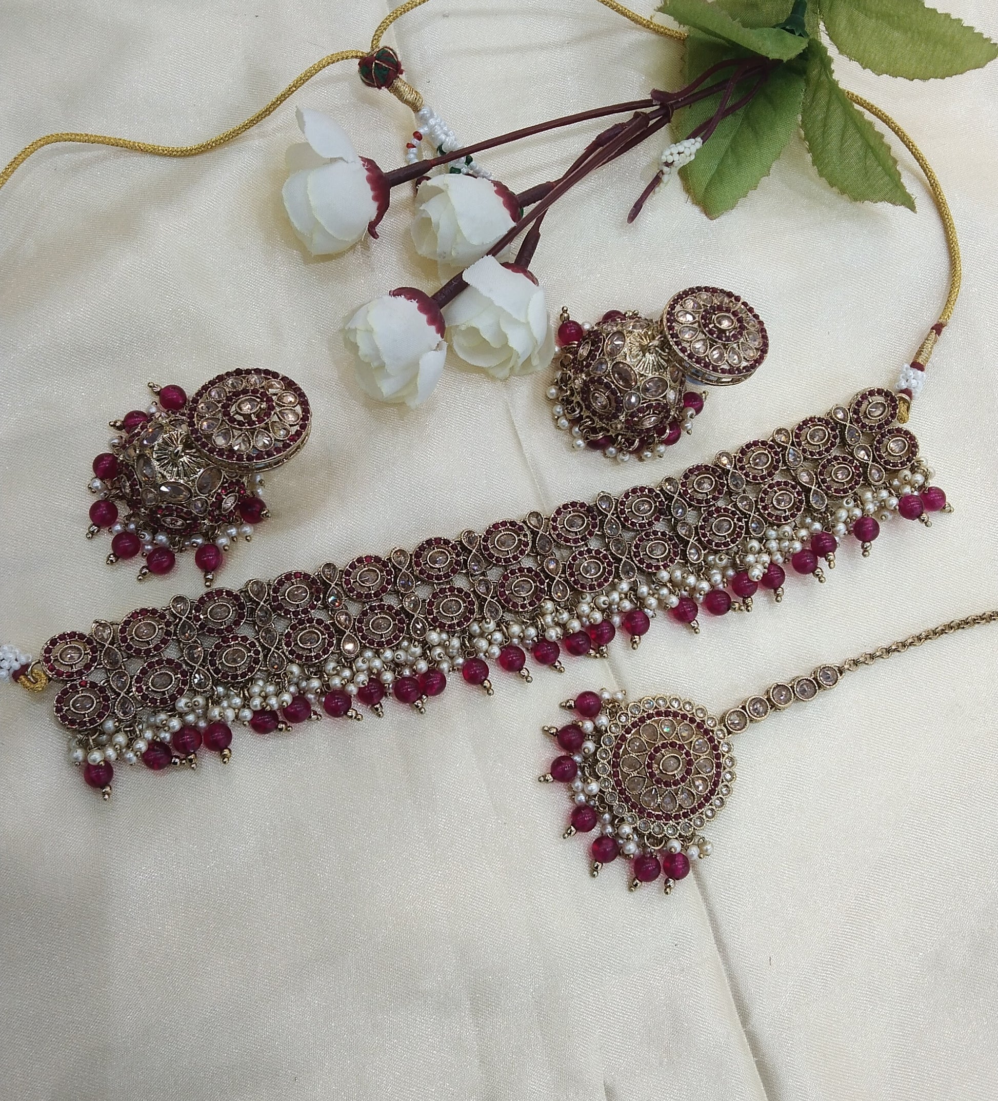 *Light weight gold Choker Set with earrings Tikka as shown in the pic.