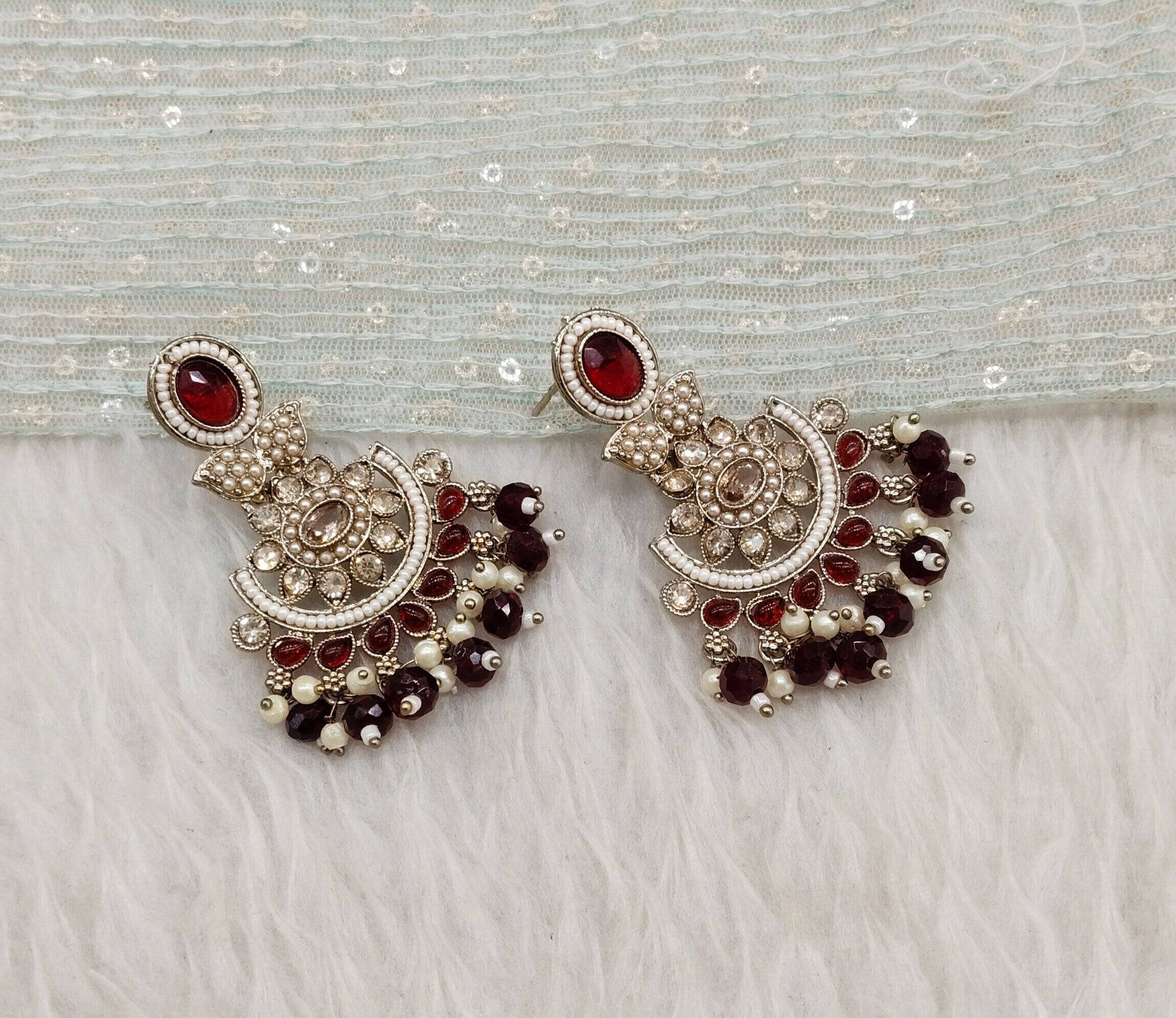Maroon Antique Gold Bollywood Maan Indian Earrings