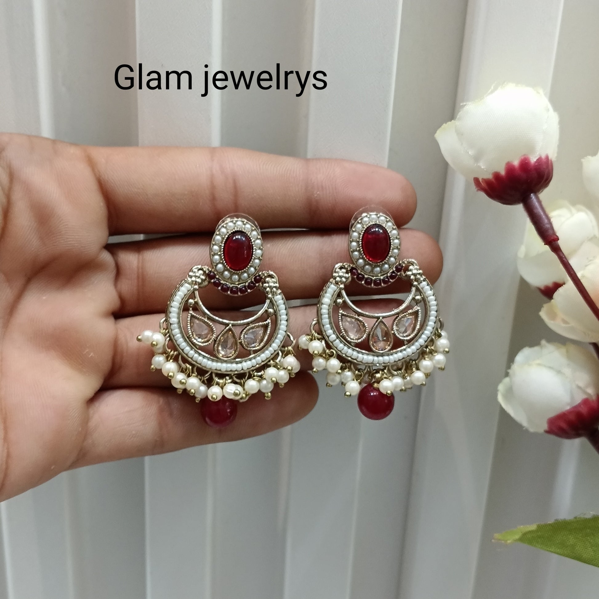 Maroon Antique Gold Bollywood Raina Indian Earrings
