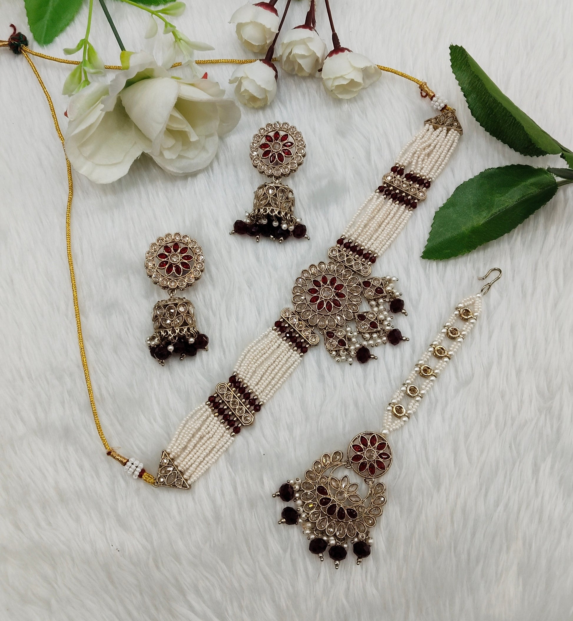 Maroon Antique Gold Choker Indian Jewellery Alan Set