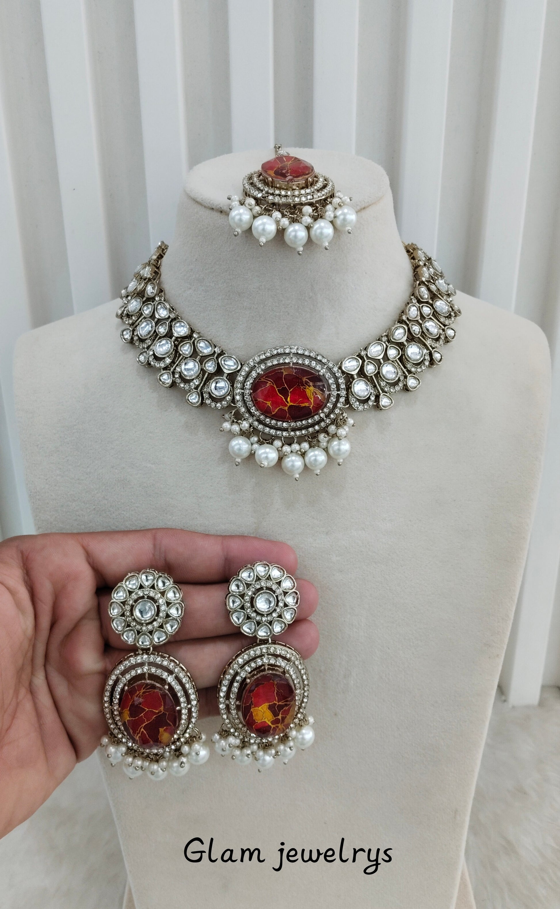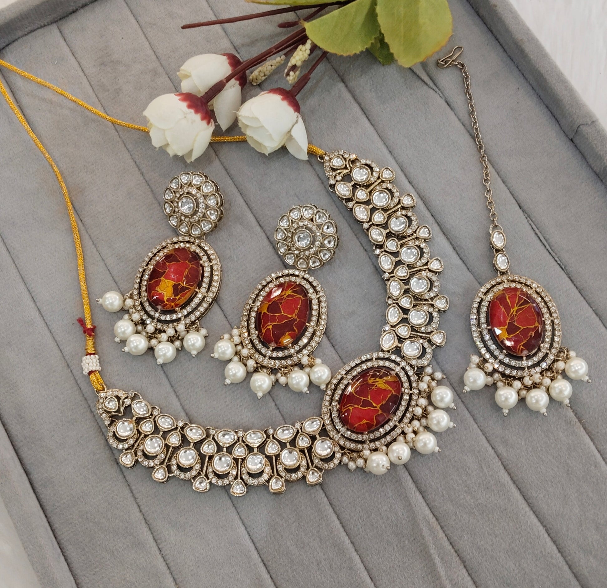 Maroon Antique Gold Kundan Necklace Indian Jewellery Wanted Set