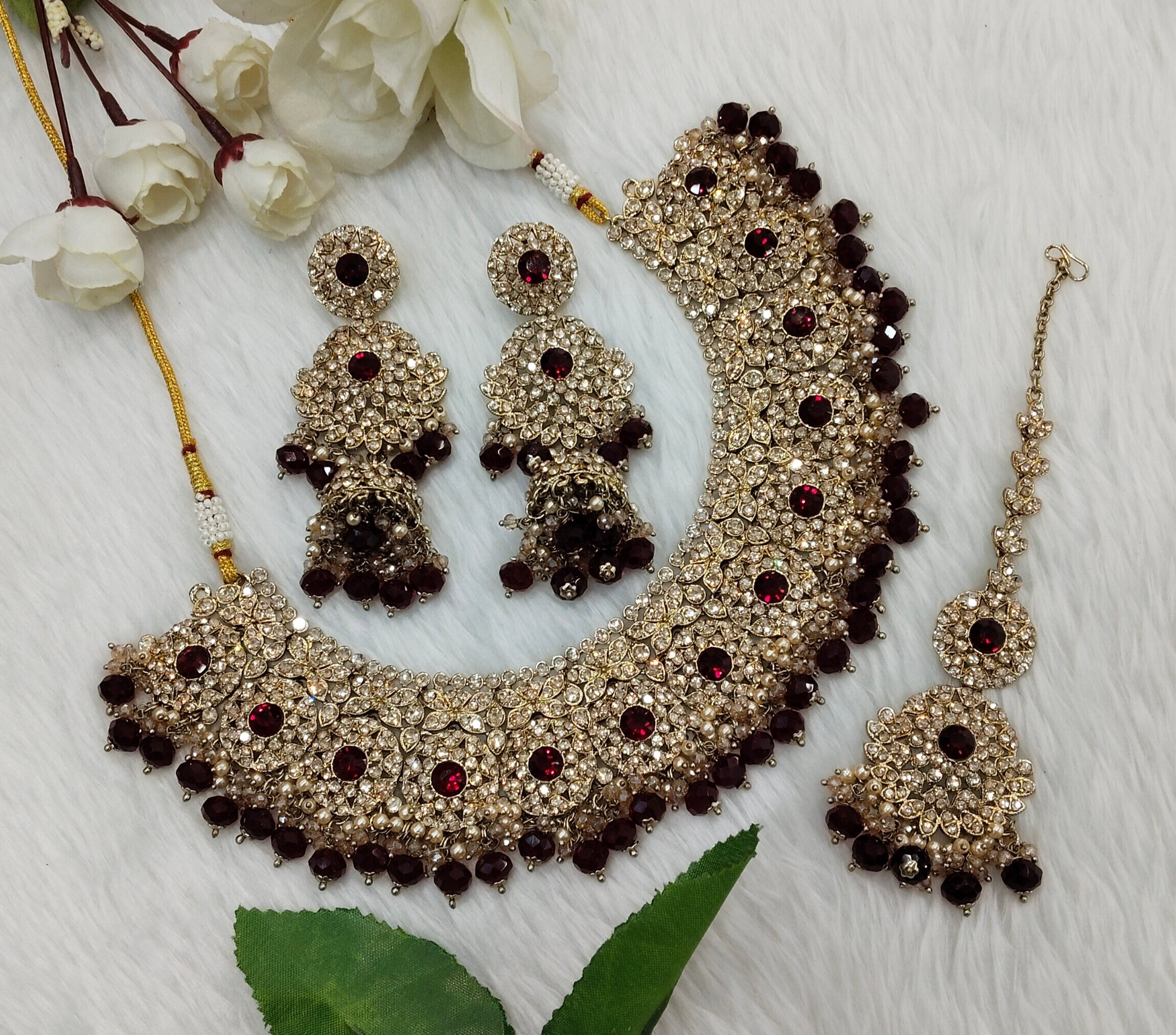 Maroon Antique Gold Necklace Indian Jewellery Meenu Set