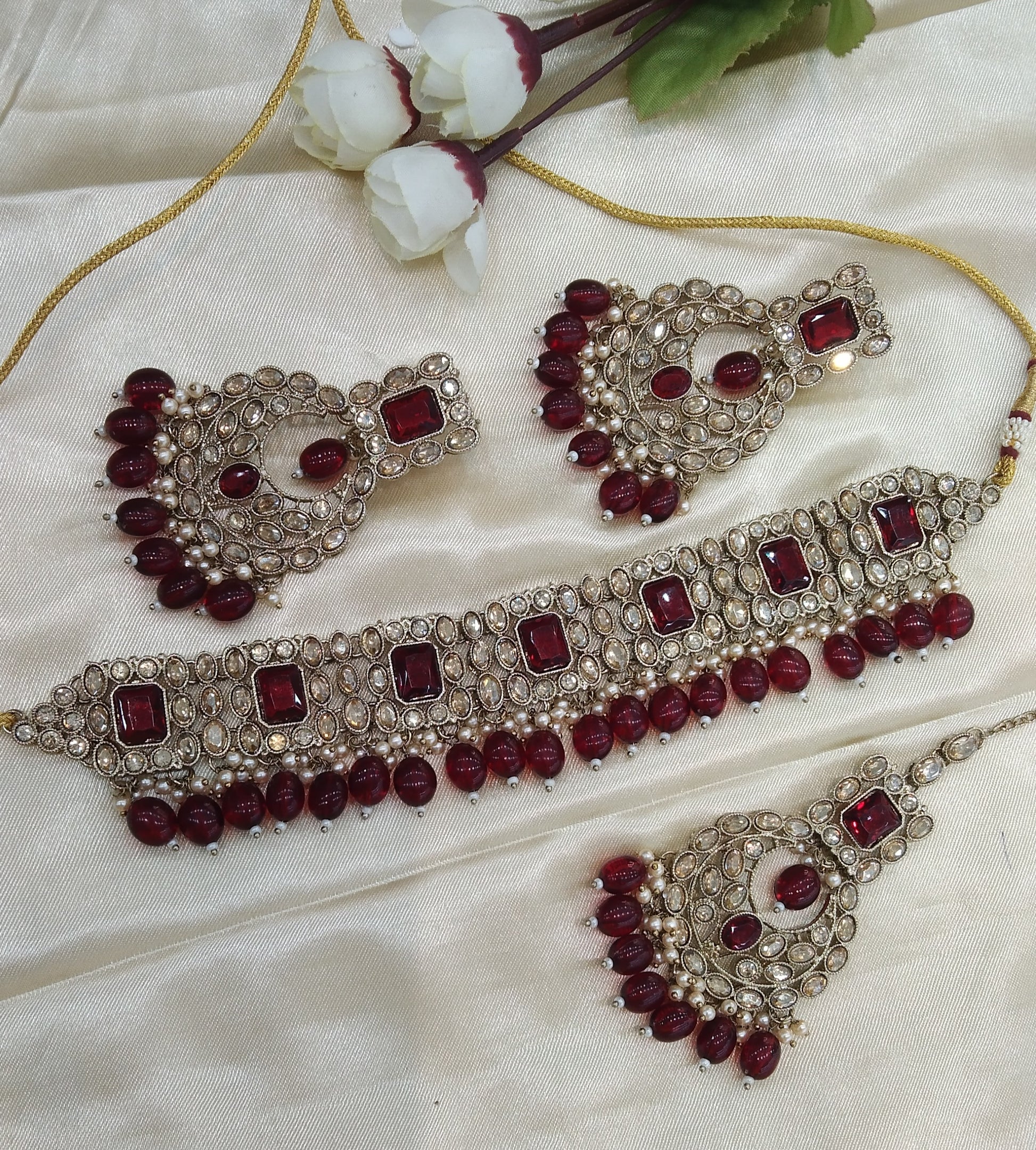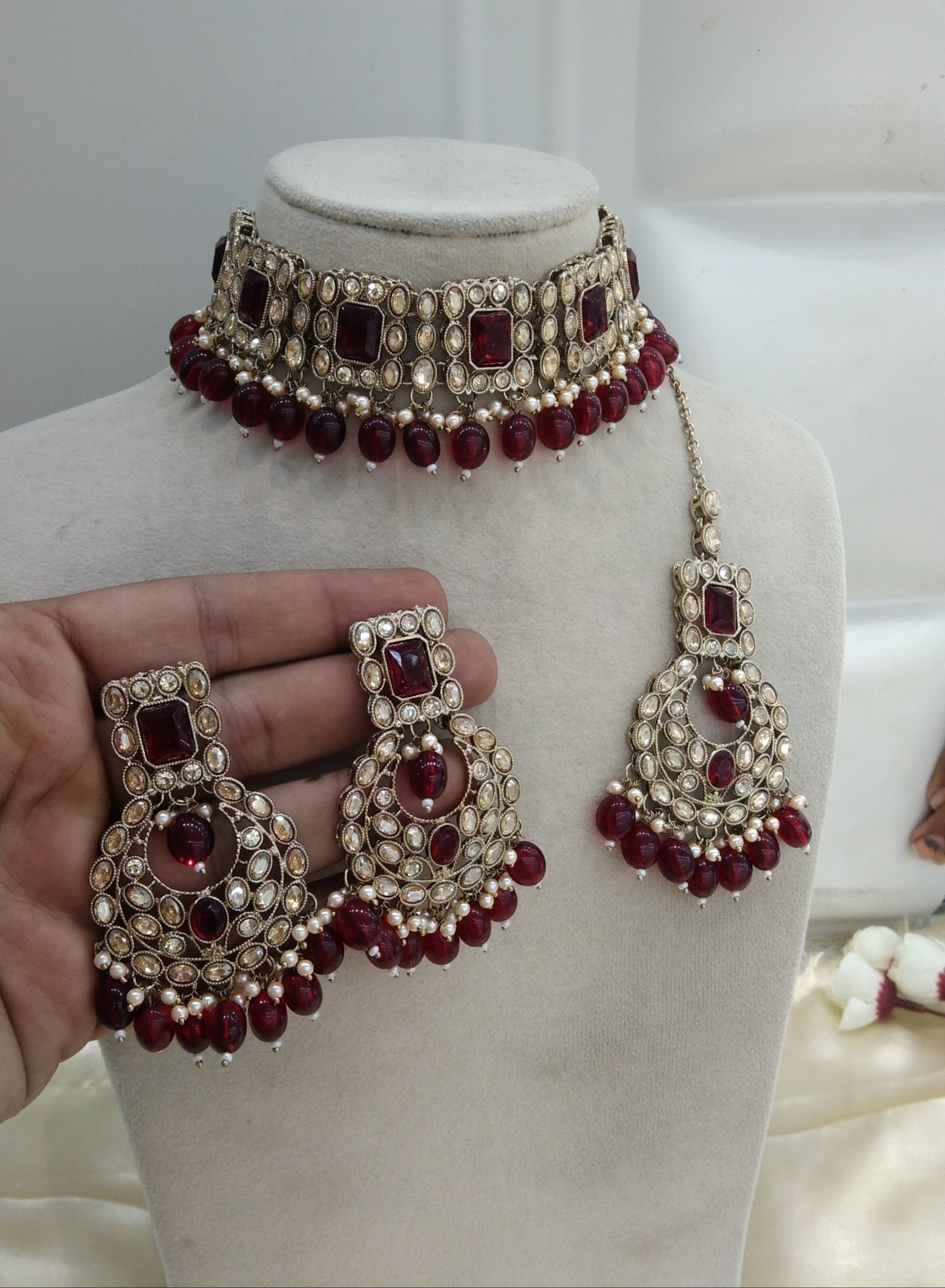 *Light weight gold Choker Set with earrings Tikka as shown in the pic.