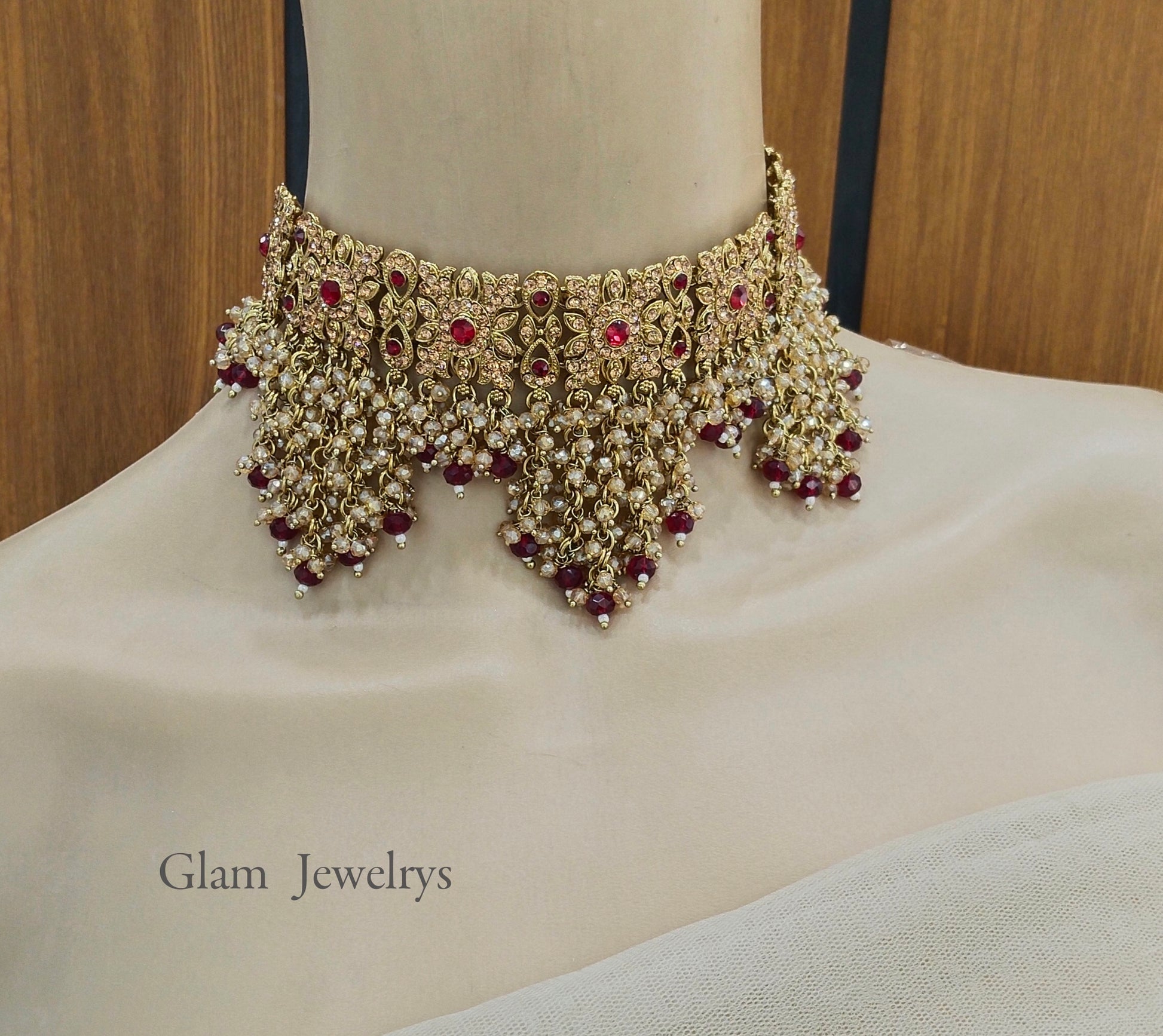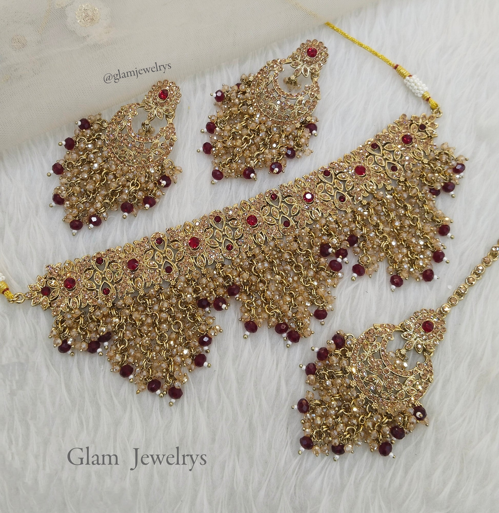 Maroon Choker Set Indian Choker Siraj Jewellery