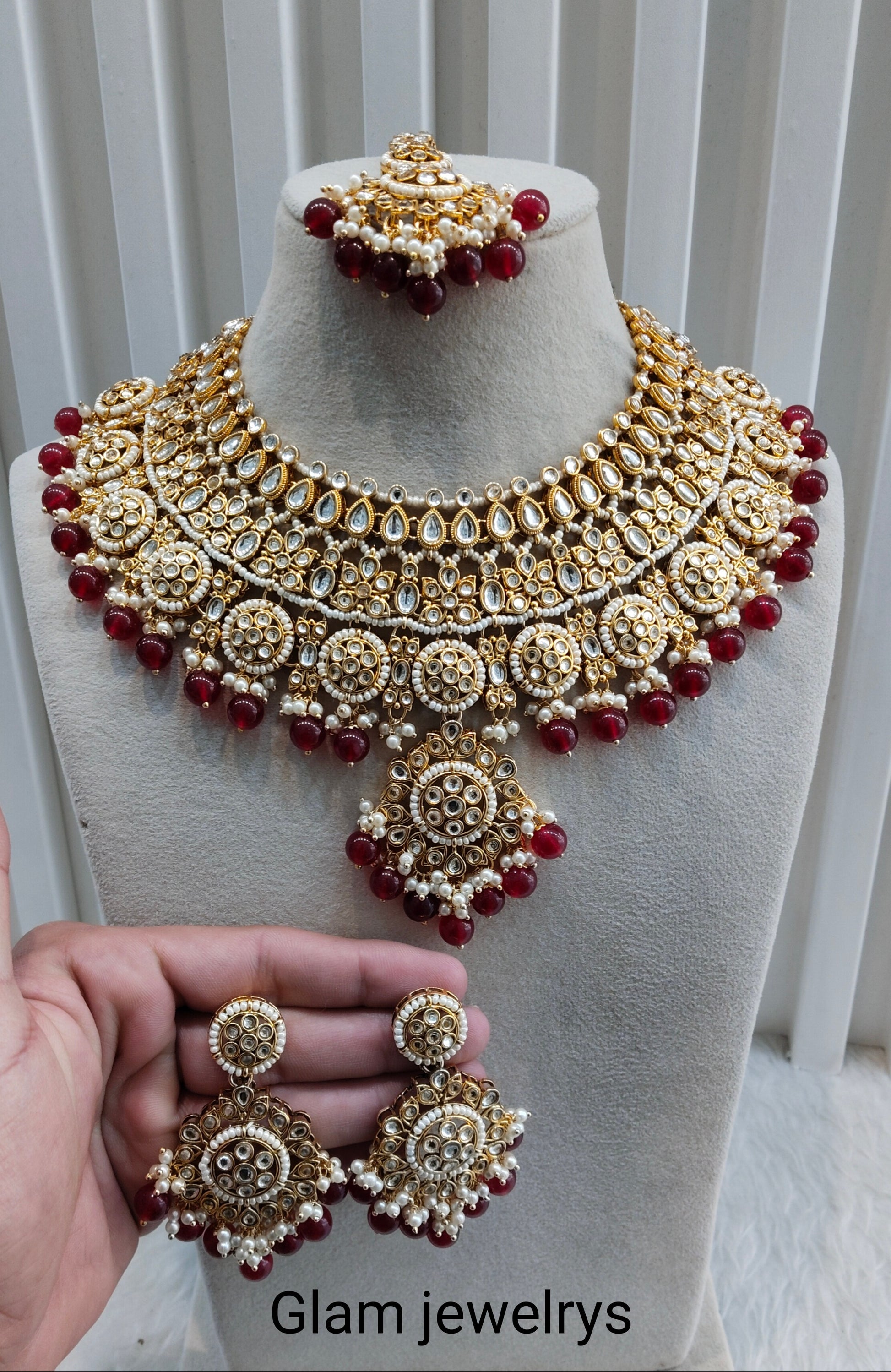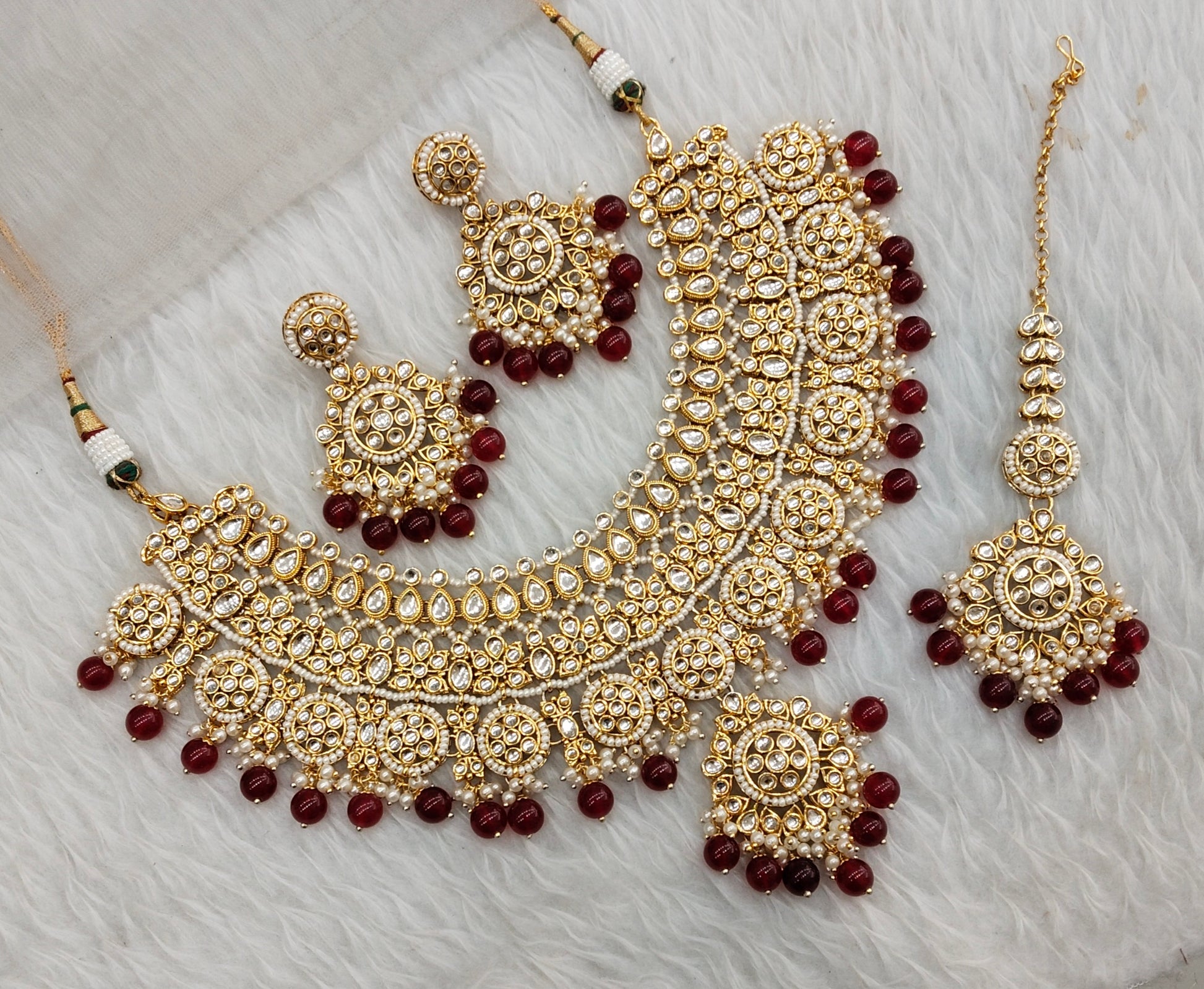 Maroon Gold Kundan Necklace Indian Jewellery Resham Set