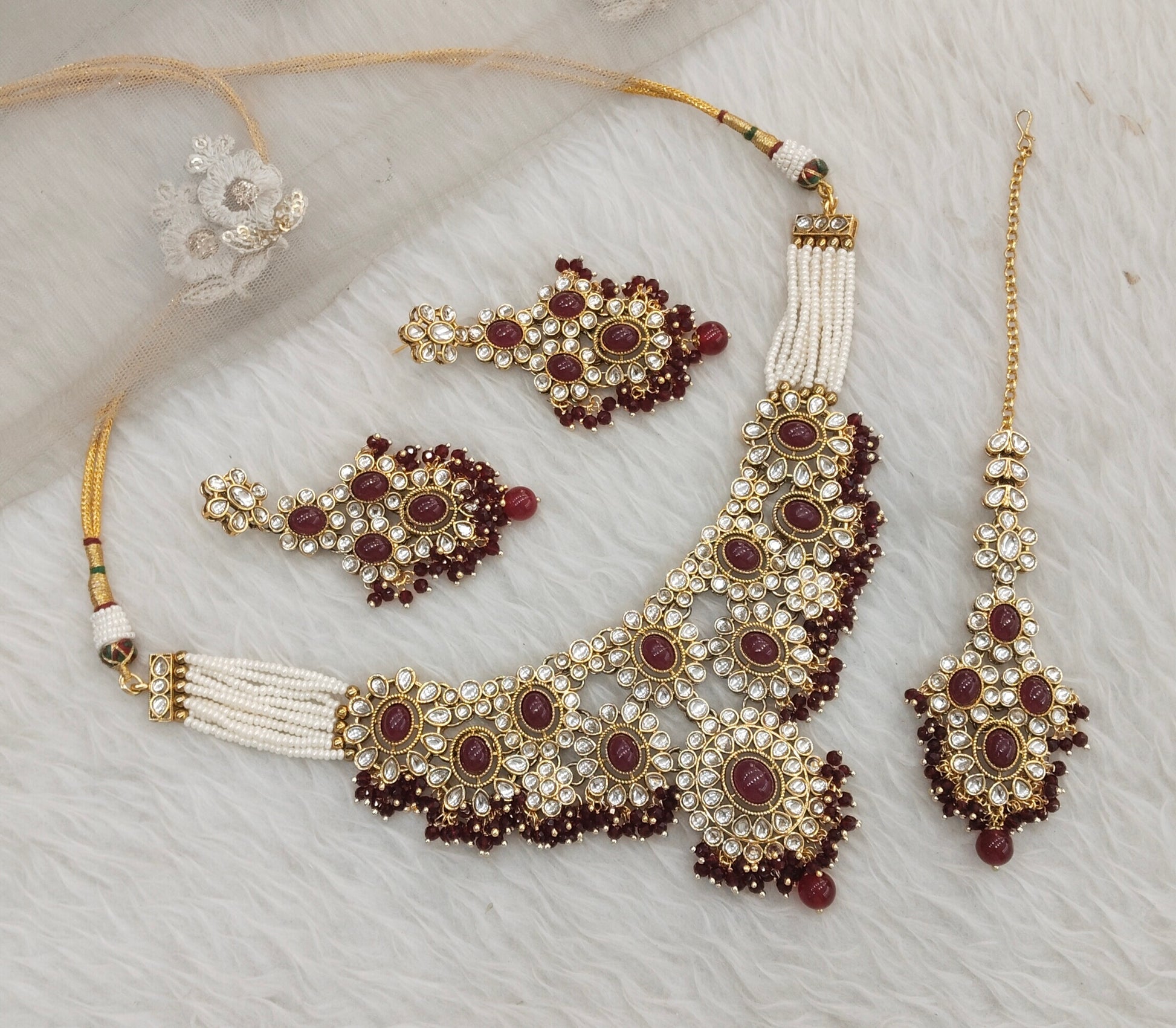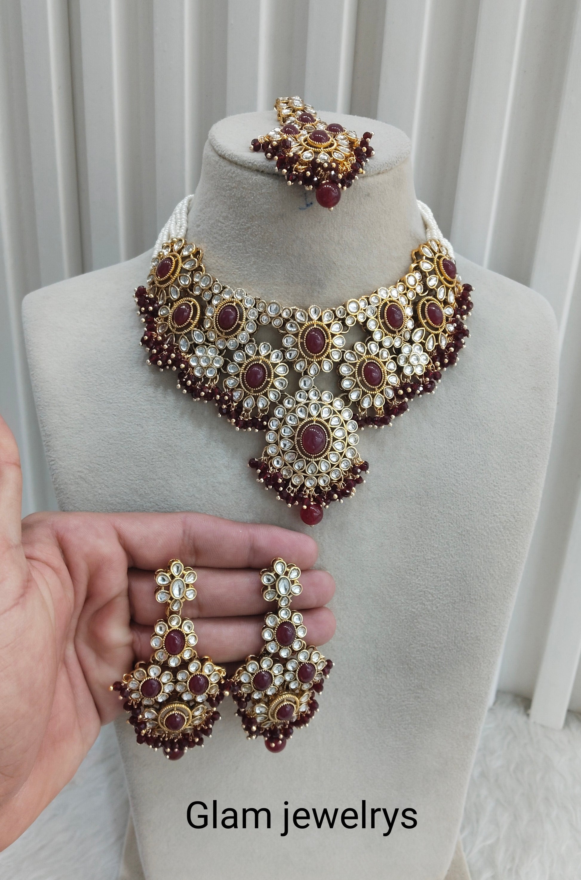 Maroon Gold Kundan Necklace Indian Jewellery Ritika Set
