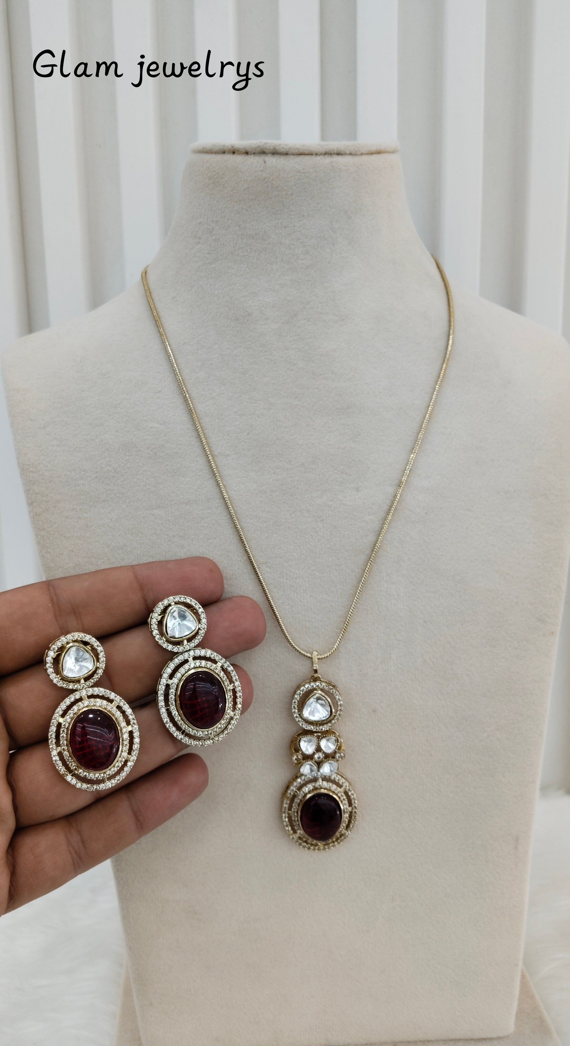 Maroon Gold Moissanite Kundan Necklace Indian Jewellery Solis Chain Set