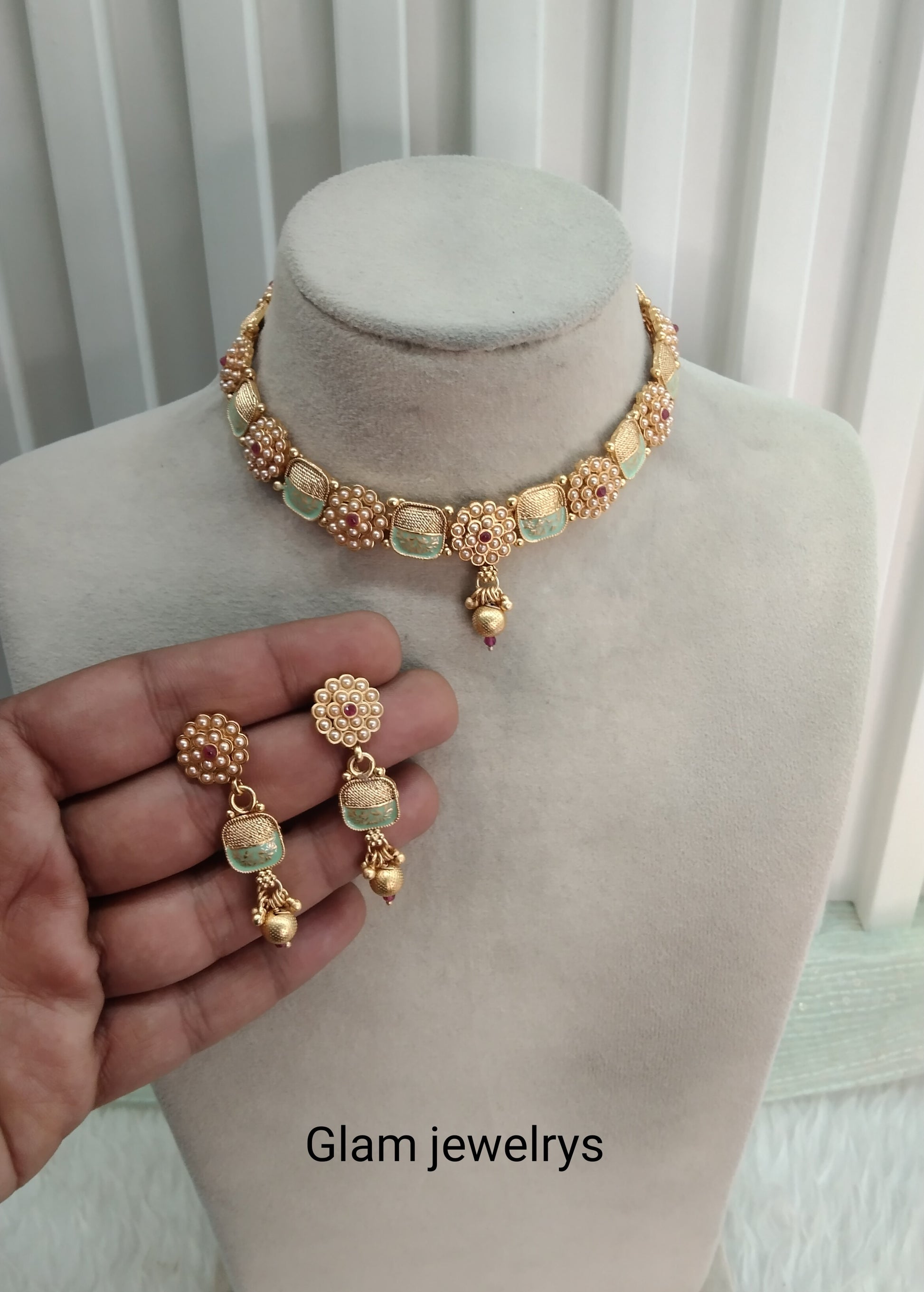 * Gold Polki Necklace Set with earrings as shown in the pic.
