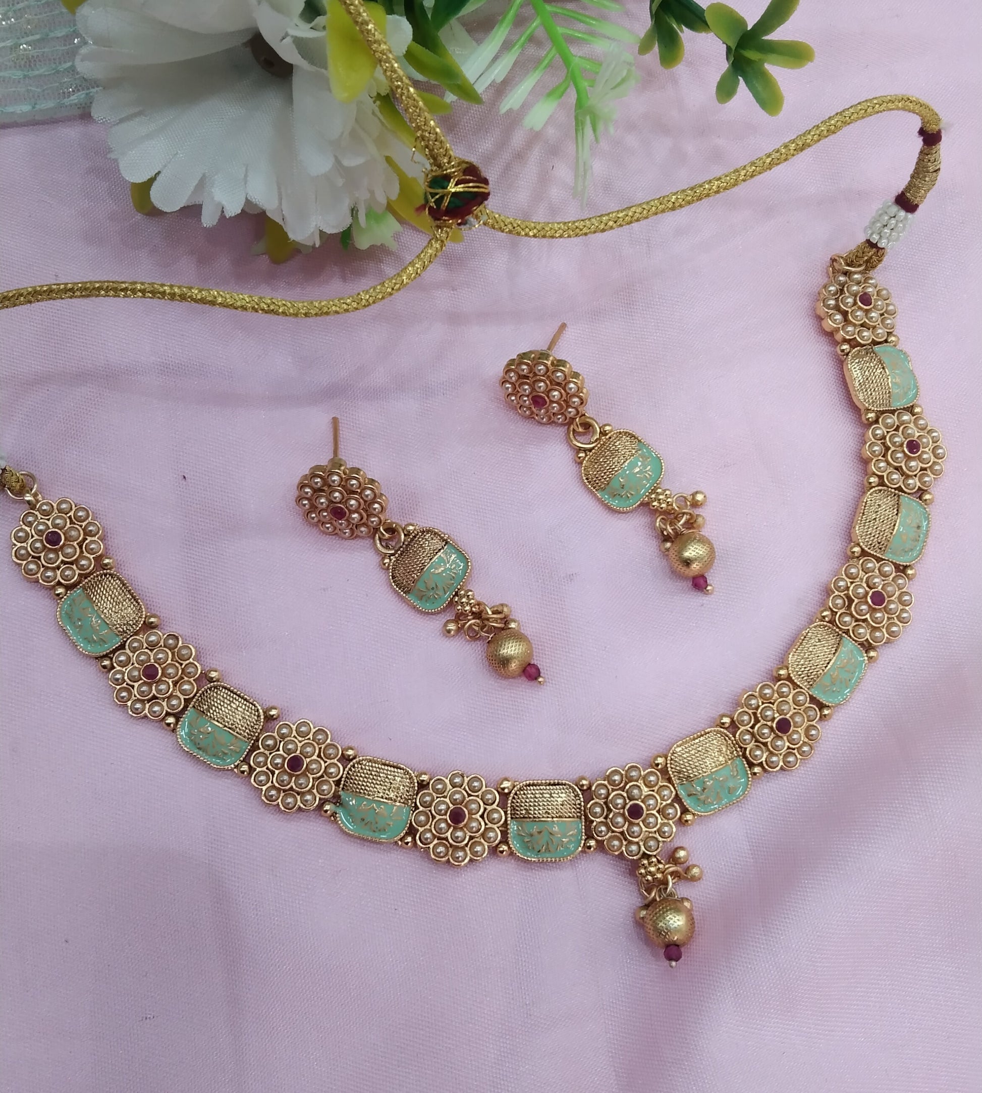 Mint Color Gold Polki Necklace Indian Jewellery Hanita Set