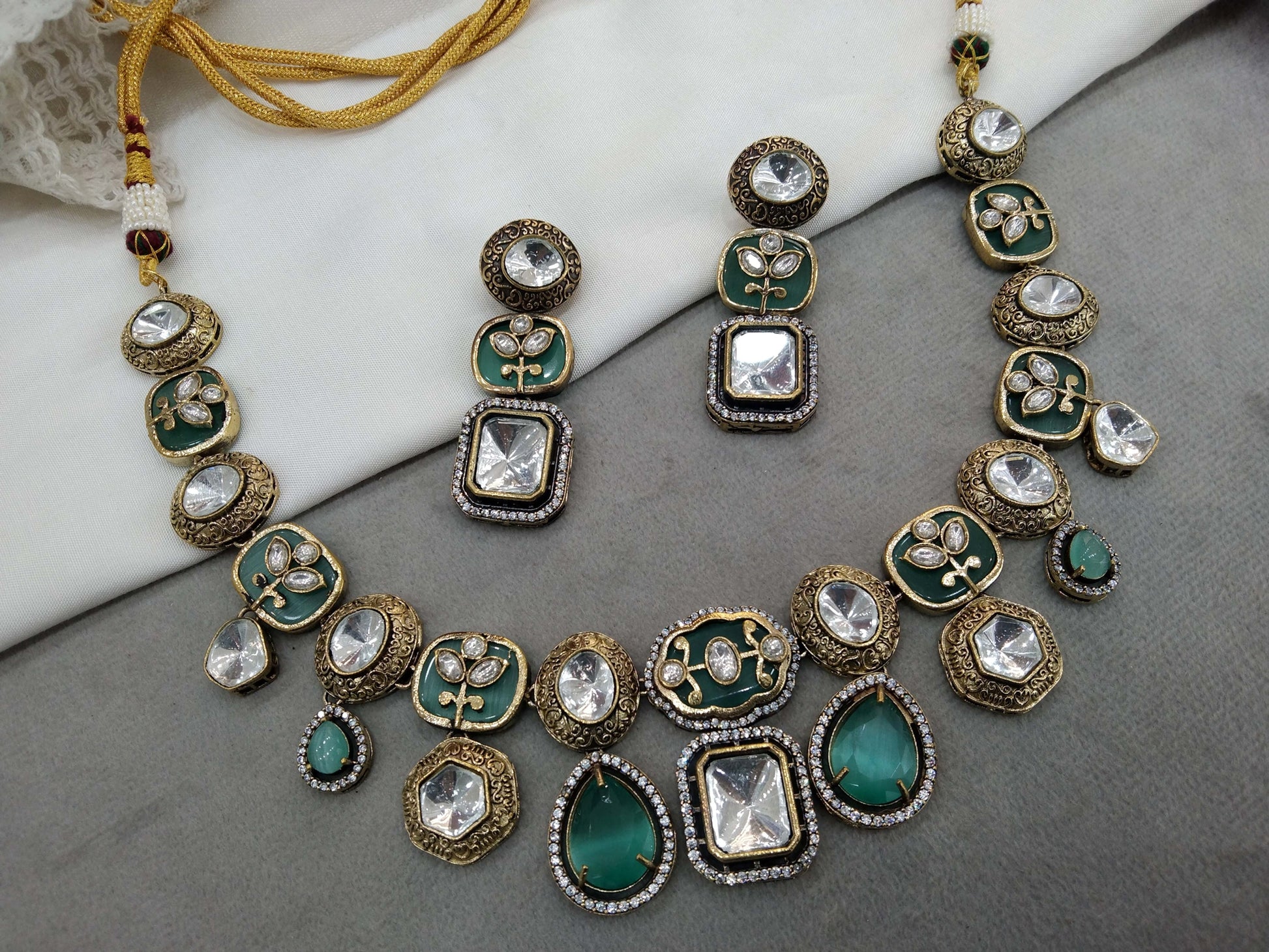 Mint Next To Real Kundan Gold necklace Indian Jewellery Shweta Wedding Set