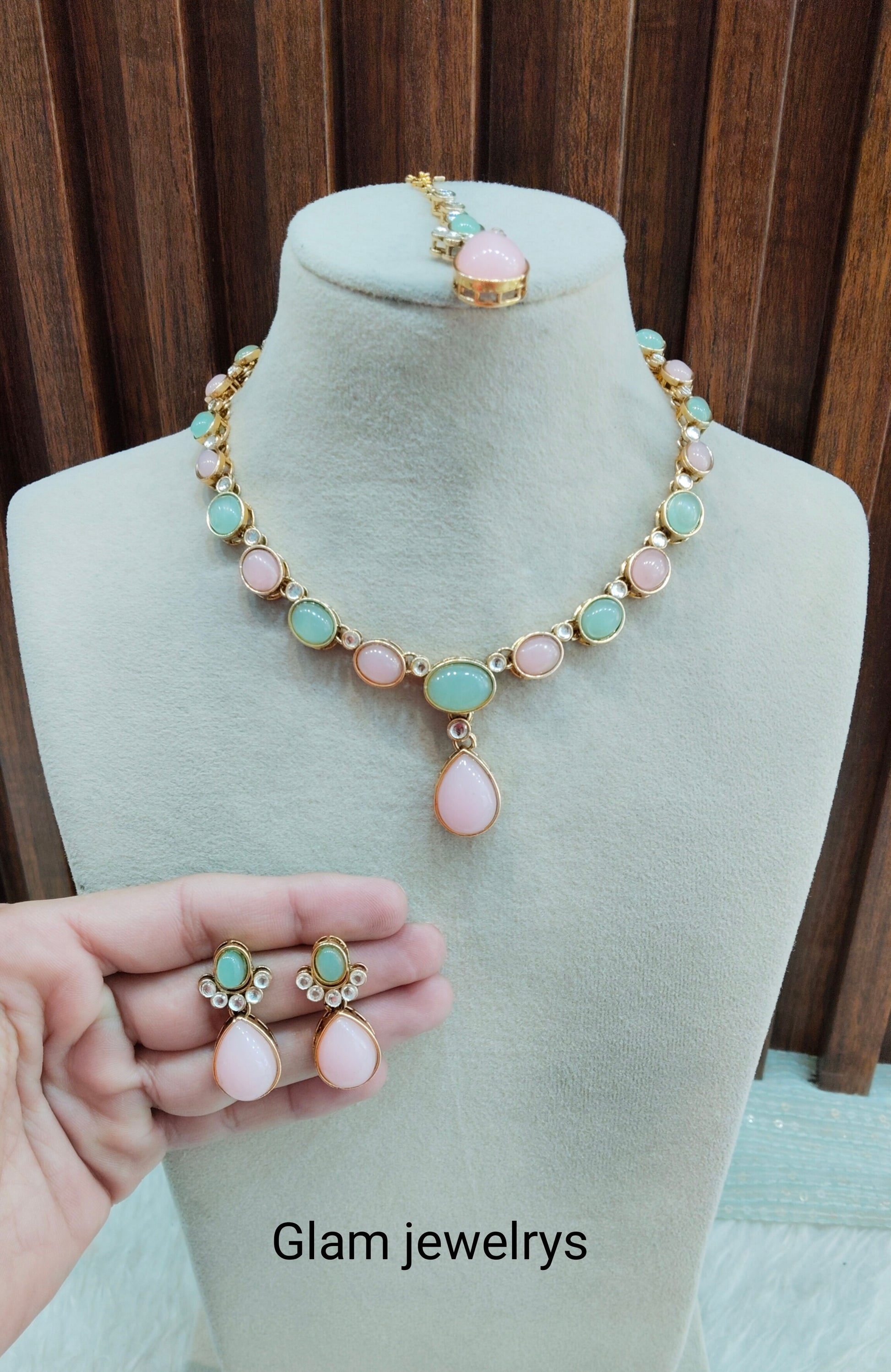Gold mint pink Kundan necklace Set/ Gold kundan Indian jewellery kundan runes sets