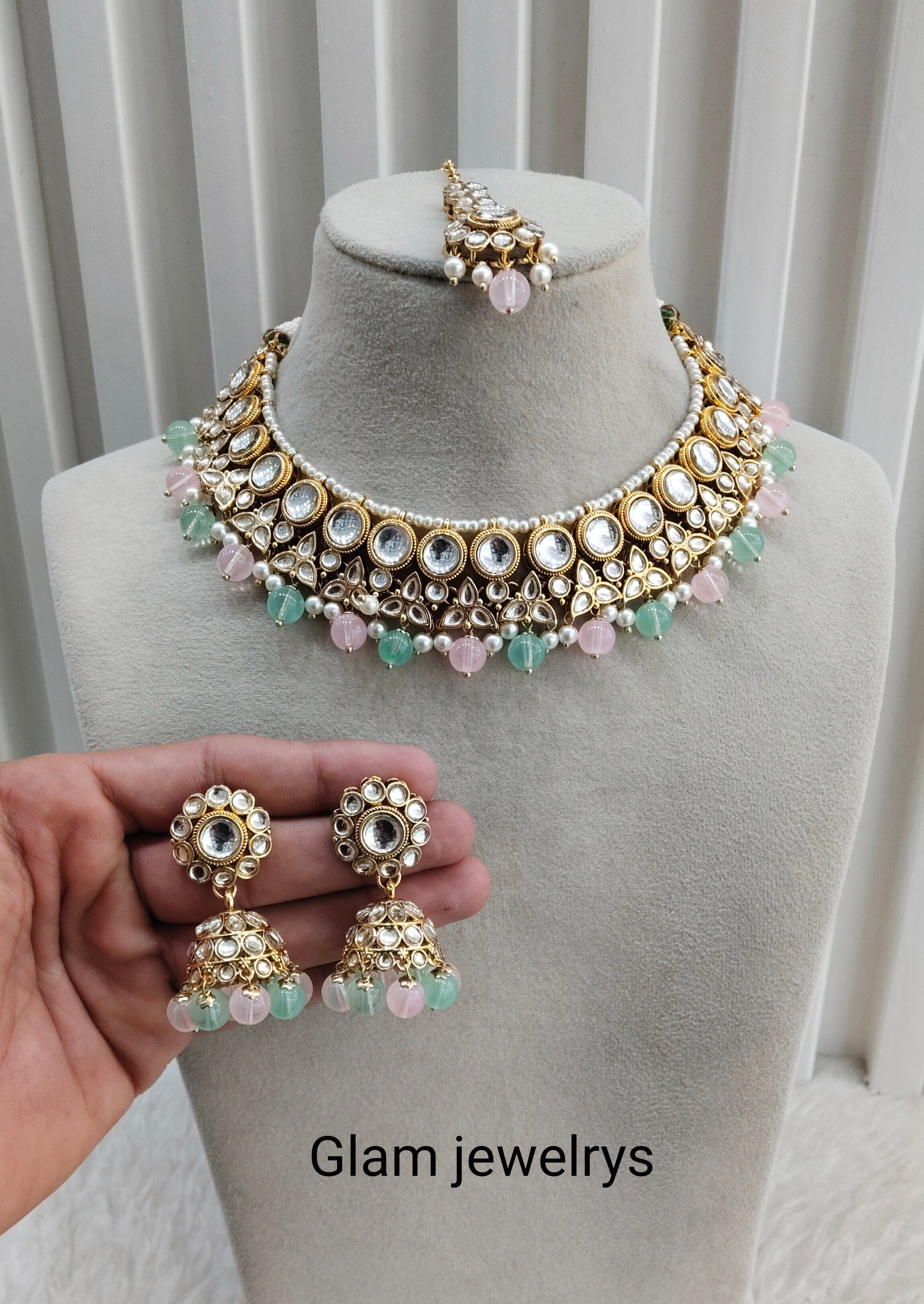 Indian Jewellery Pink Kundan Choker Set/ kundan choker hello Set