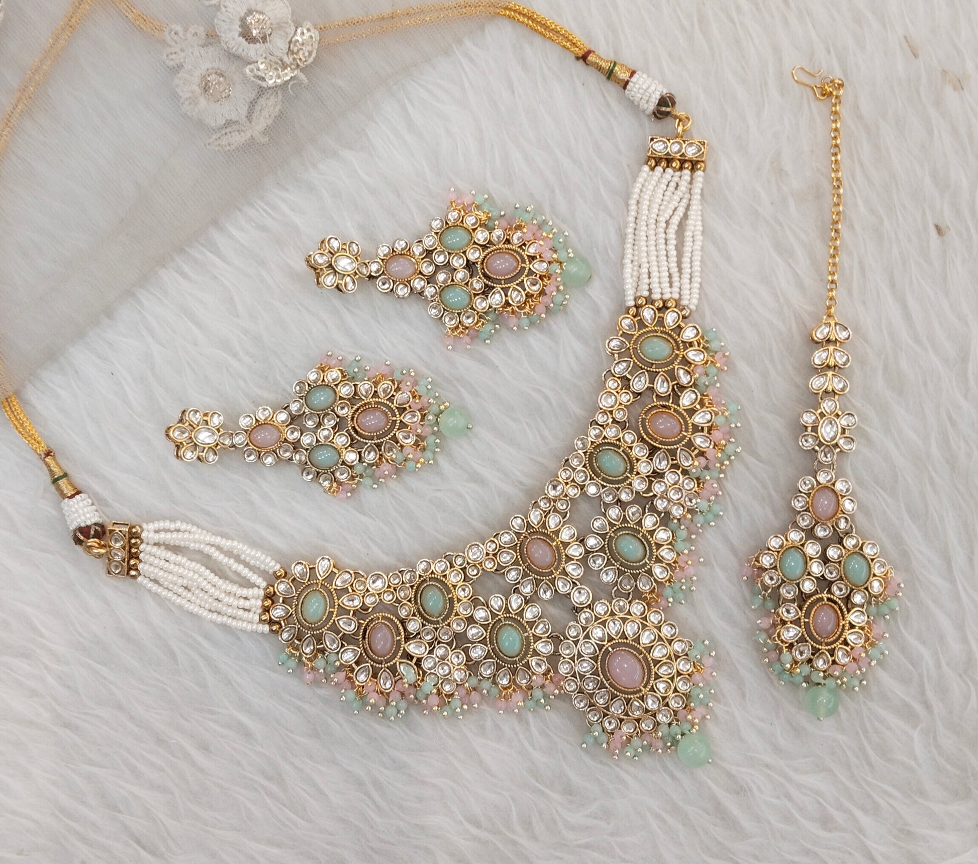 Pastel Green Bridal Necklace Jewellery Kadir Set