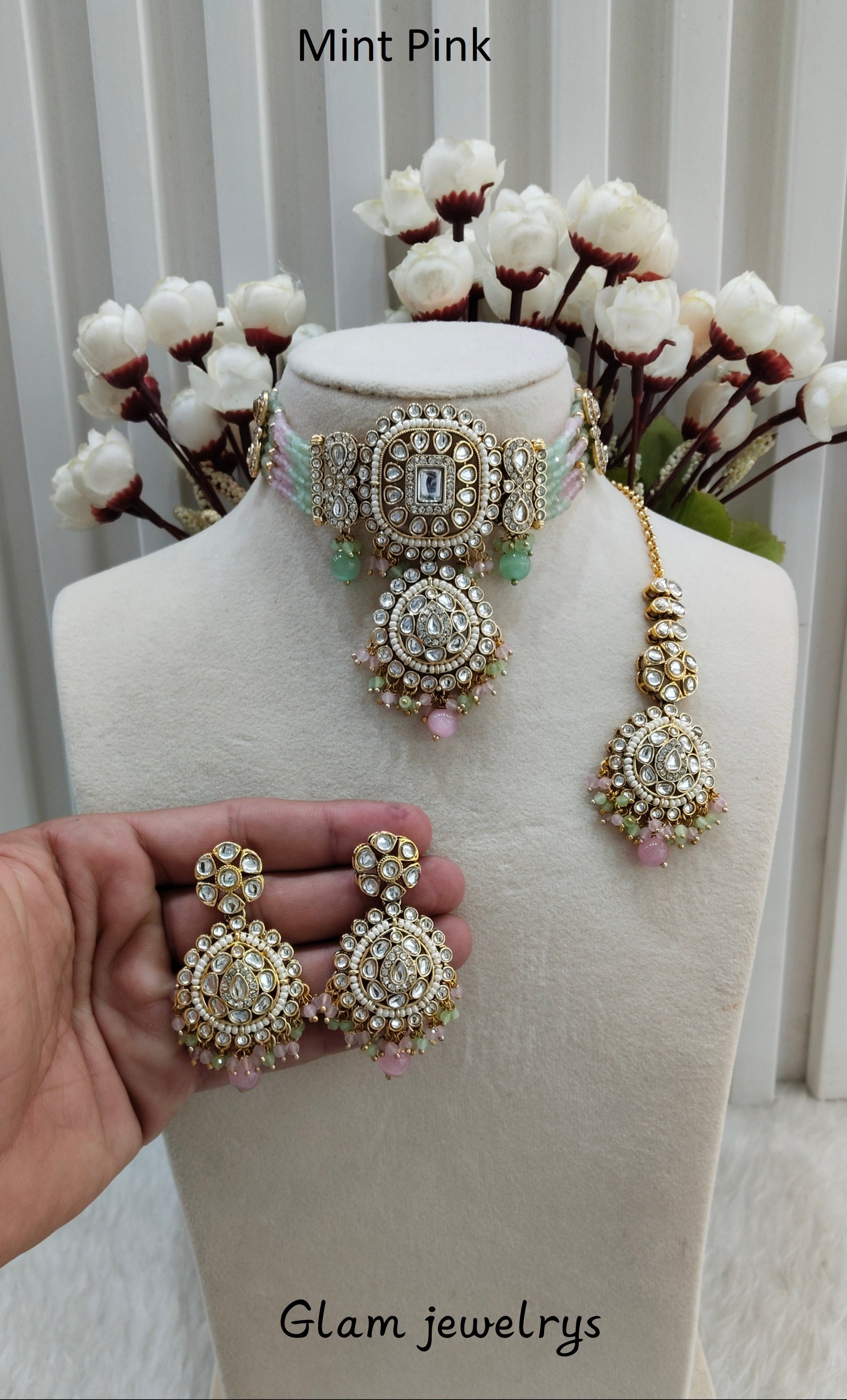 Mint Pink Indian Jewellery Kundan choker Lavani Set