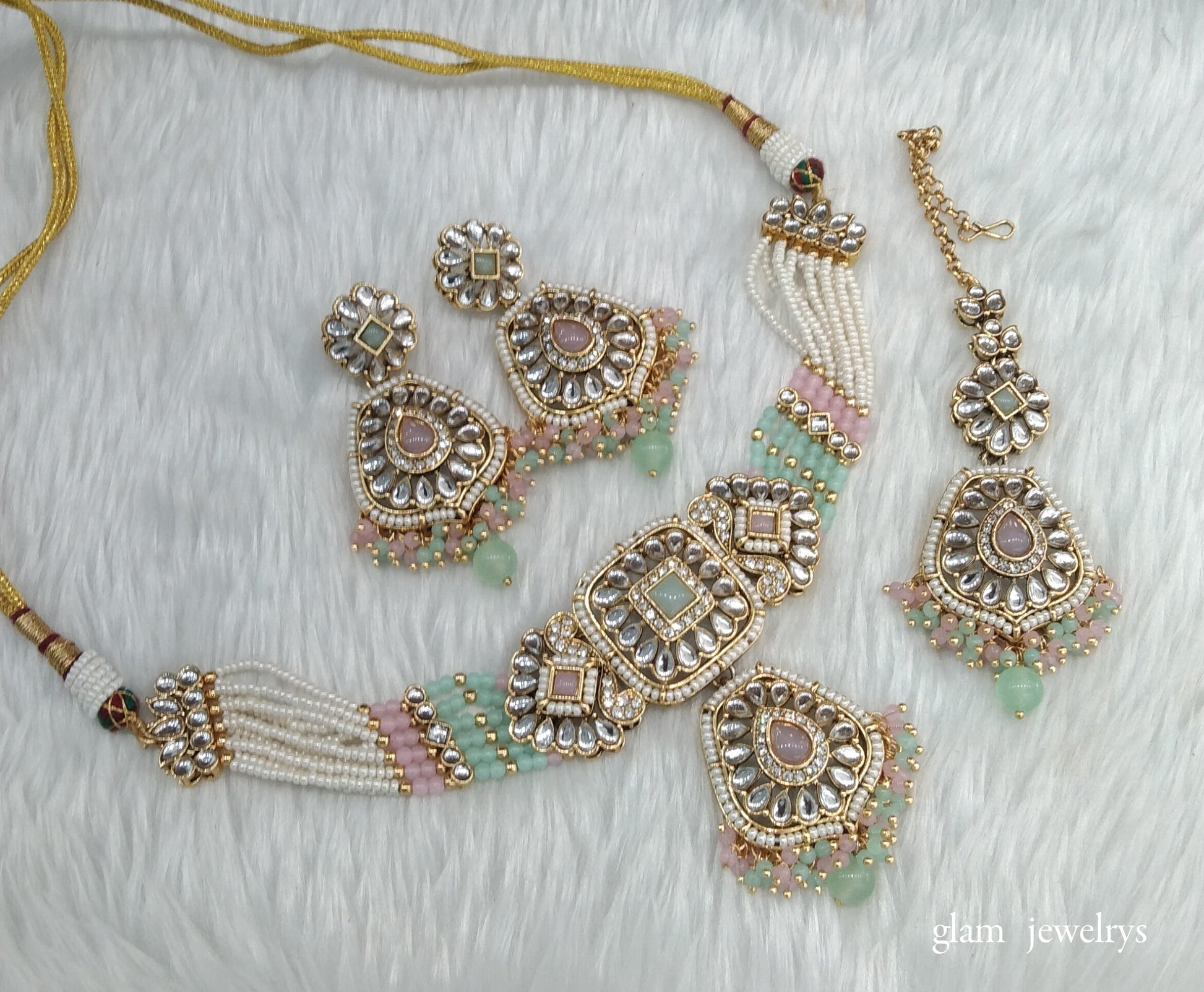 Mint pink kundan Choker Indian jewellery Reetu sets