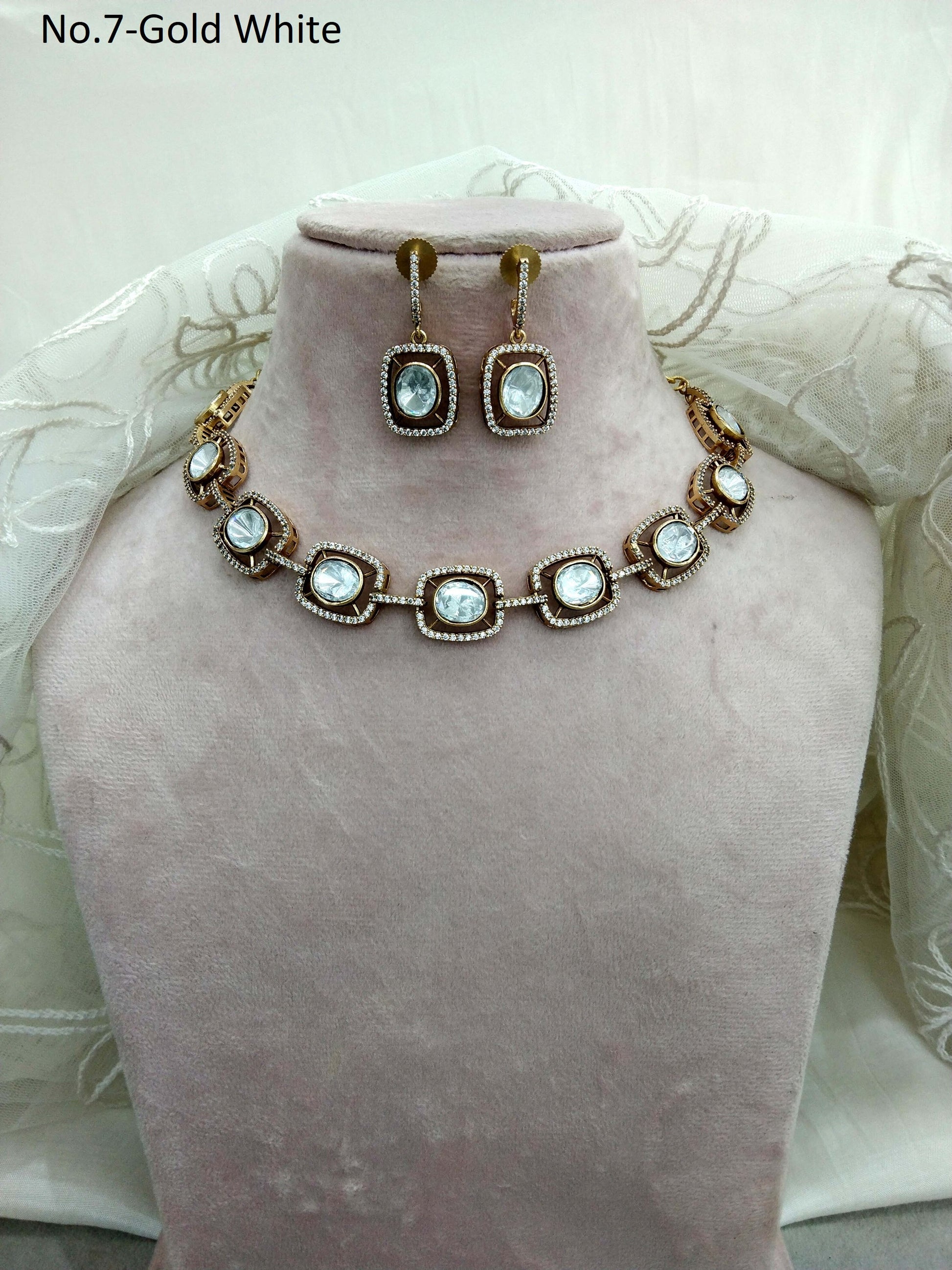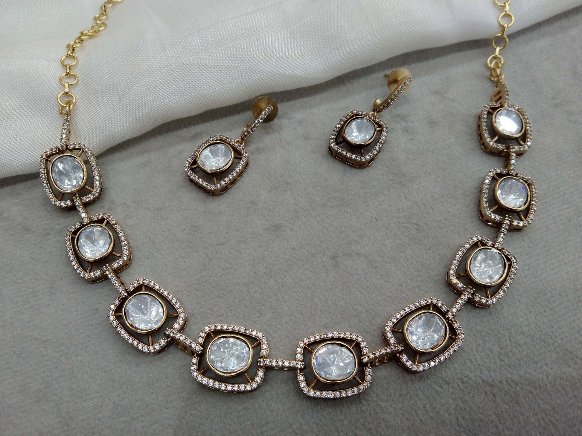Moissanite Indian Jewellery kundan Gold White necklace Set Indian Jewellery maya Wedding Set