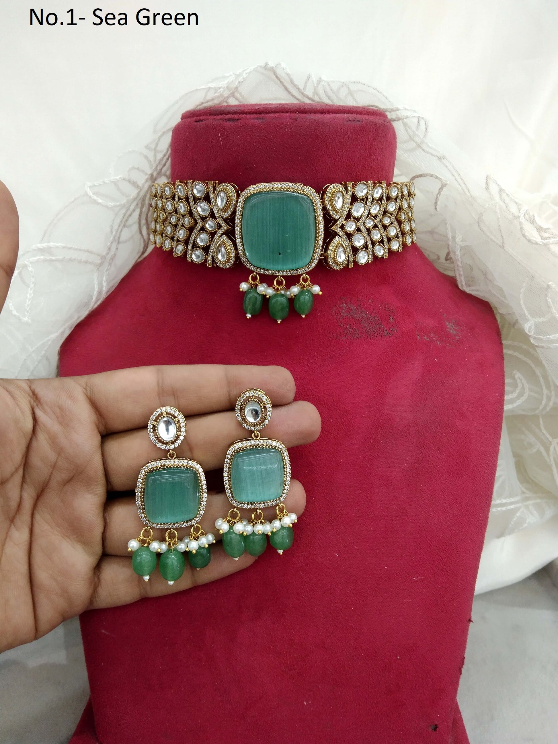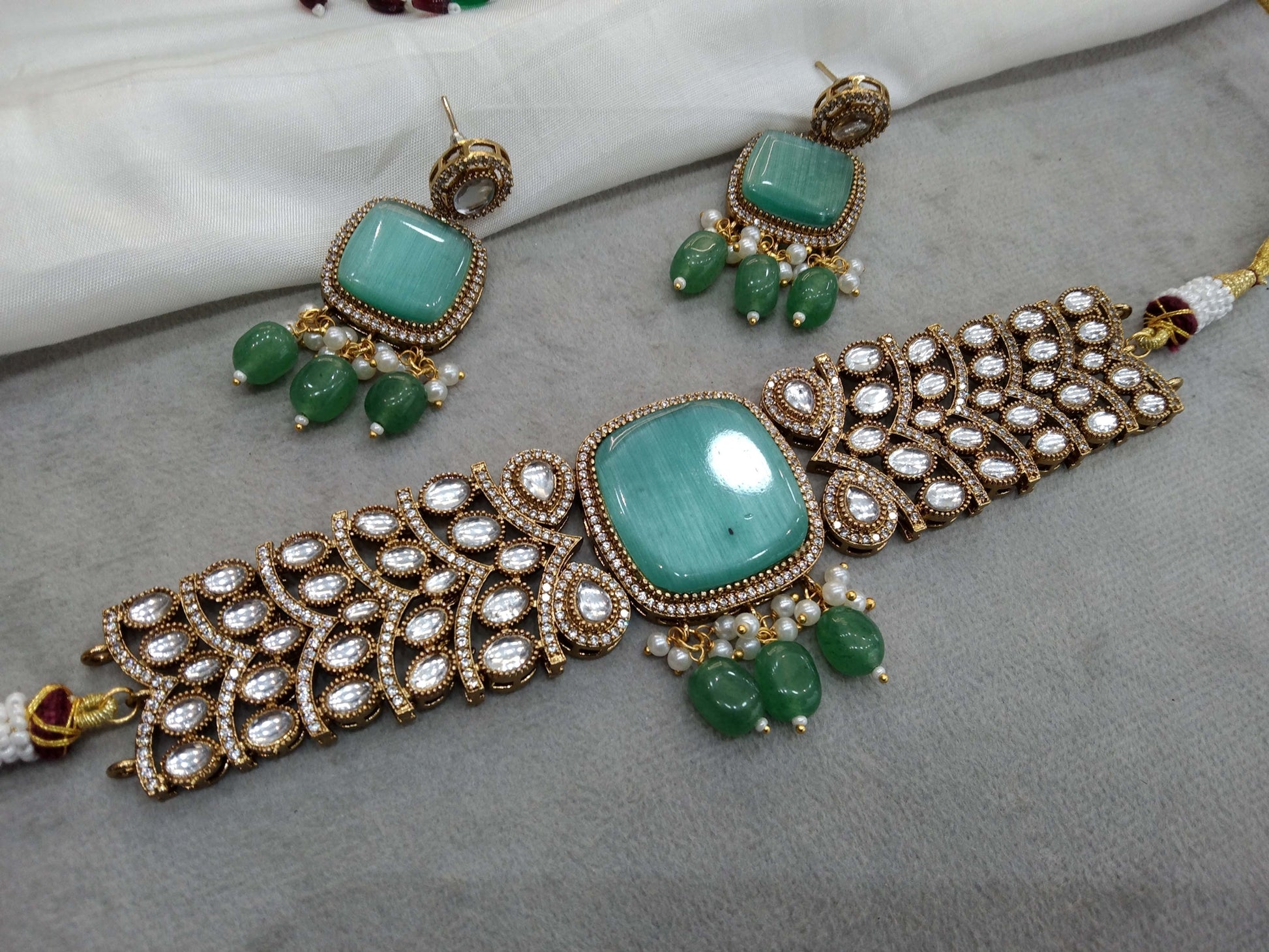 Moissanite Indian Jewellery kundan Sea Green choker Set Indian Jewellery Roma Wedding Set
